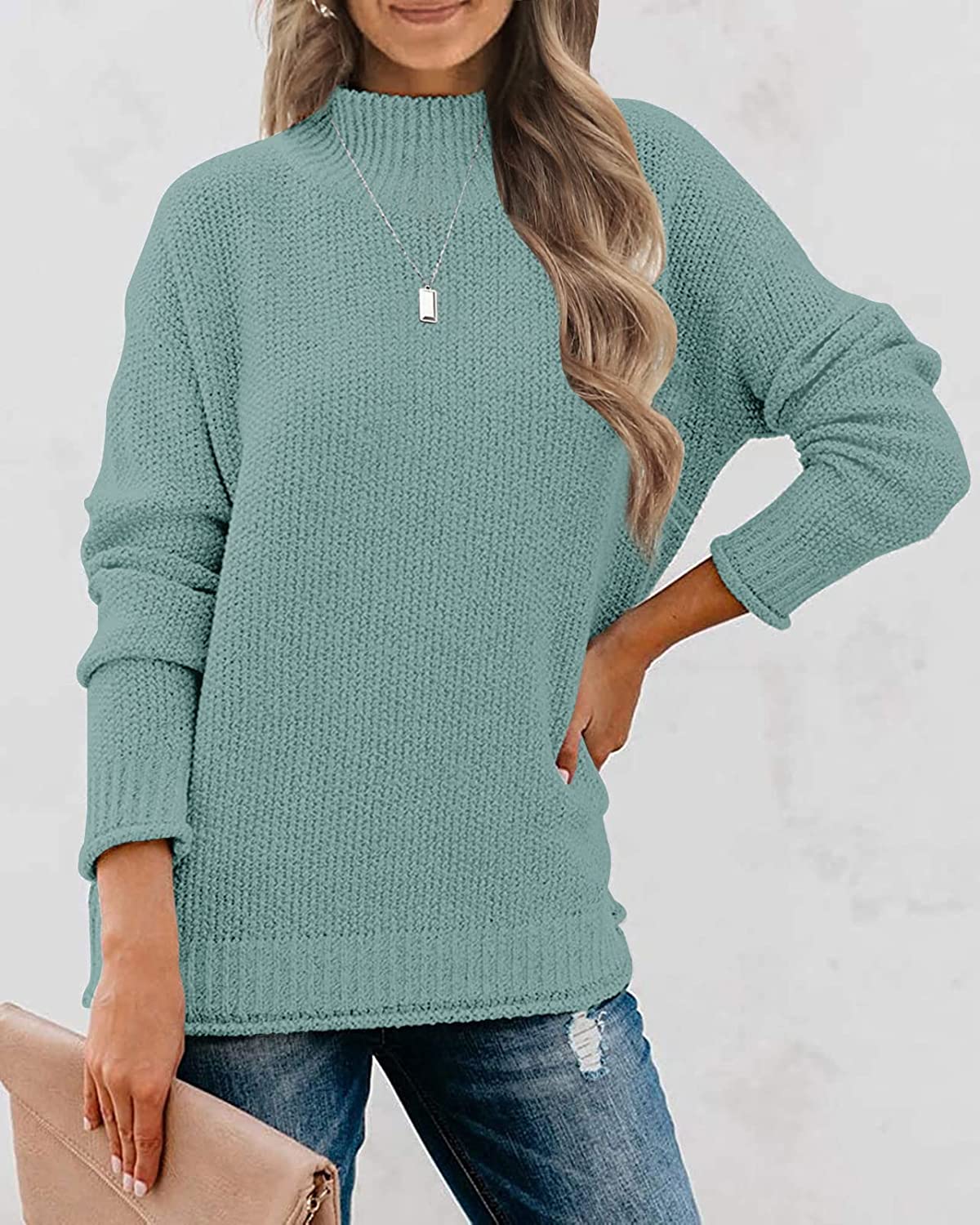 • The turtleneck sweater is the perfect choice for a chilly day! Chunky knitted tops are stylish and warm. Soft fabric and slouchy style make this basic plain sweater will quickly become your closet favorite!