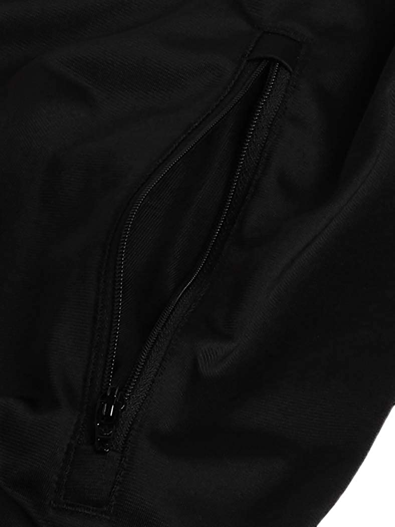 - Zip pockets provide secure storage, and ribbed cuffs and hem give a snug feel