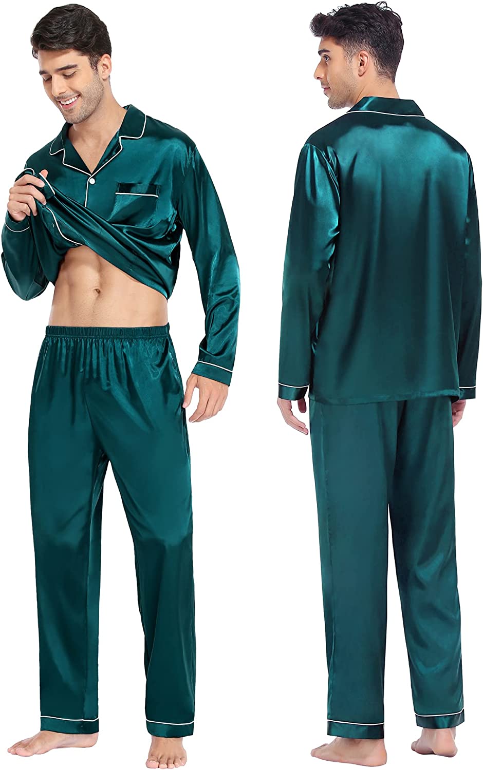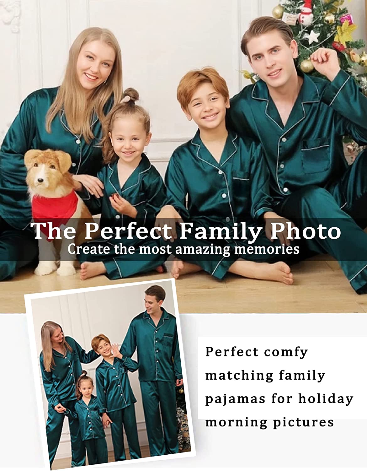 SWOMOG Family Matching Pajamas Set Silk Satin Button Down Sleepwear Long Sleeve Nightwear 2 Pcs Pj Set
