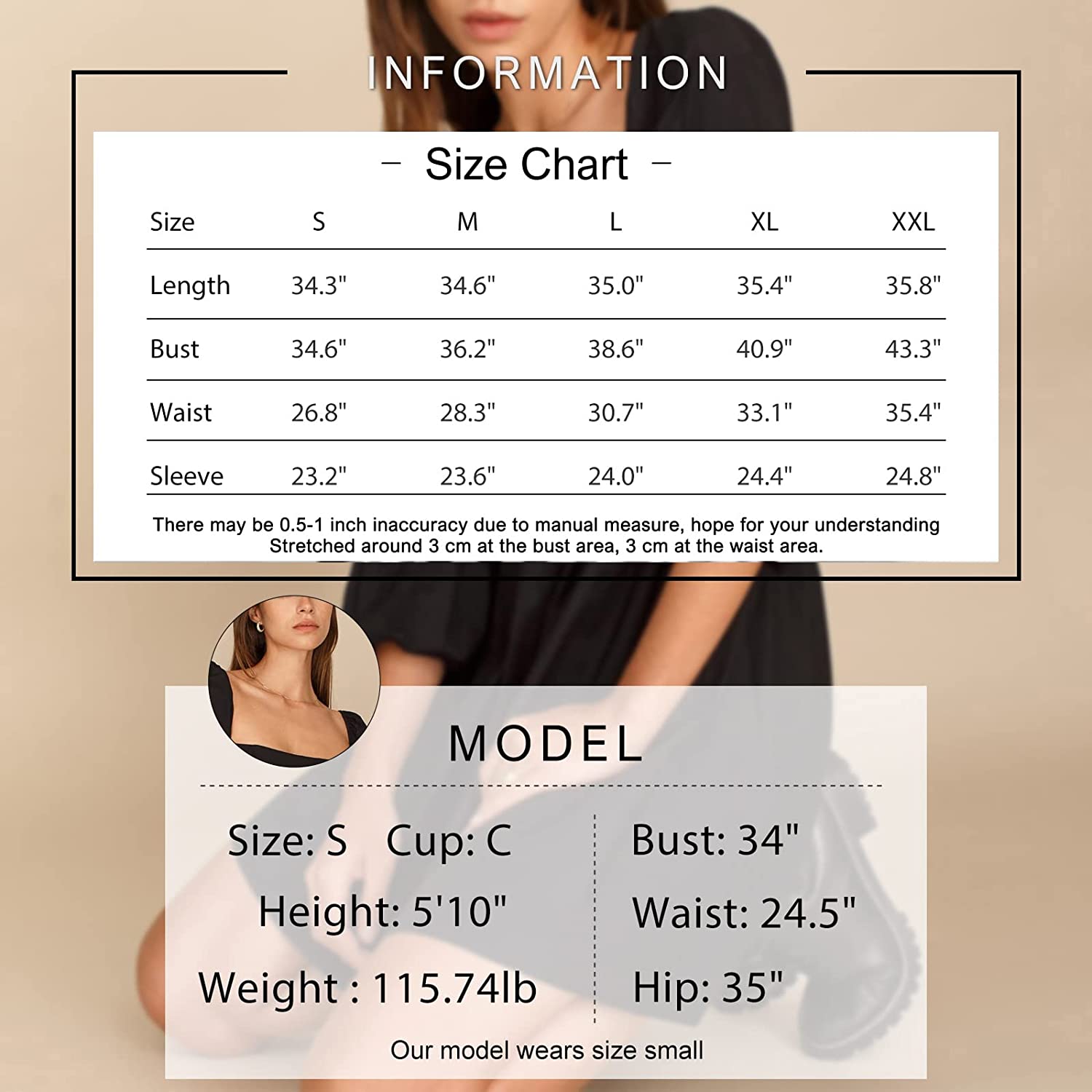 • Features: Square Neck, Puff Long Sleeve with Elastic Cuffs(Elastic Band in the Middle of Sleeves), Smocked Back, High Waist, Invisible Zipper on Back, Mini Length.