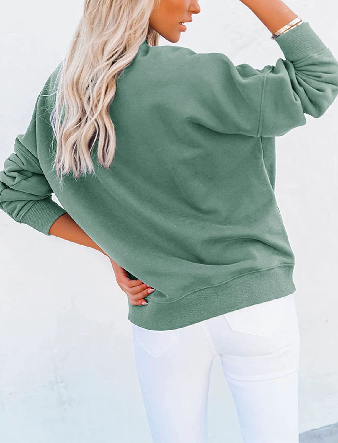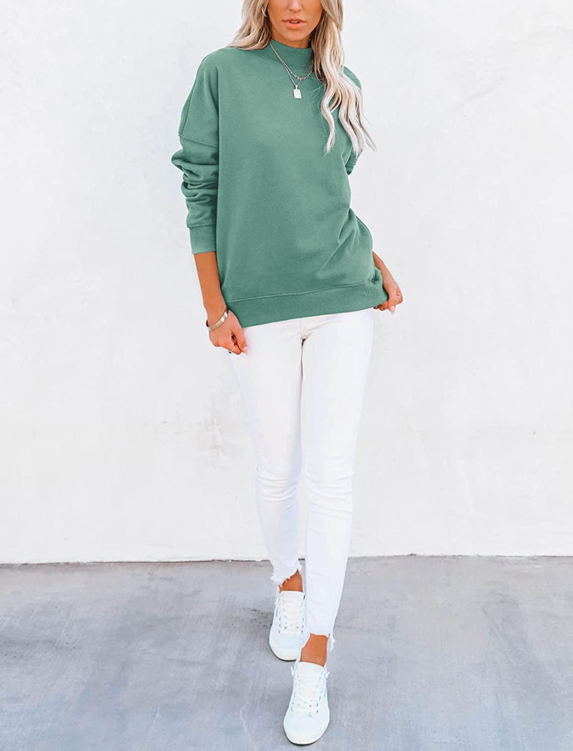 Features: Lightweight pocketed sweatshirt, basic solid color top, mock turtleneck, casual relaxed fit.