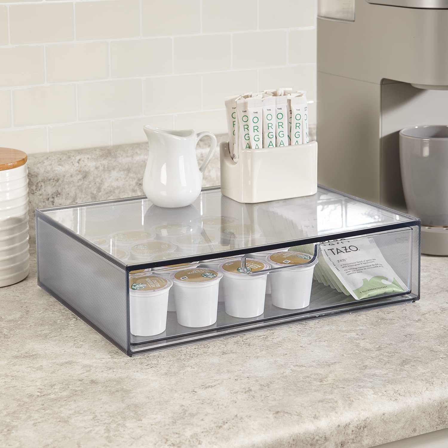 Stackable design great for organizing kitchen pantries, vanity cabinets, and office desks