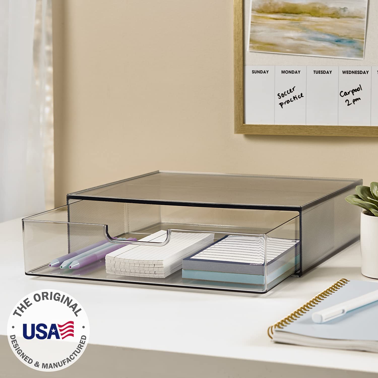 STORi STAX Plastic Stackable Organizer Drawer in Classic Grey | 12.5-inches Wide | Organize Office Desk Accessories and Sort Letter-Size Paper | Made in USA