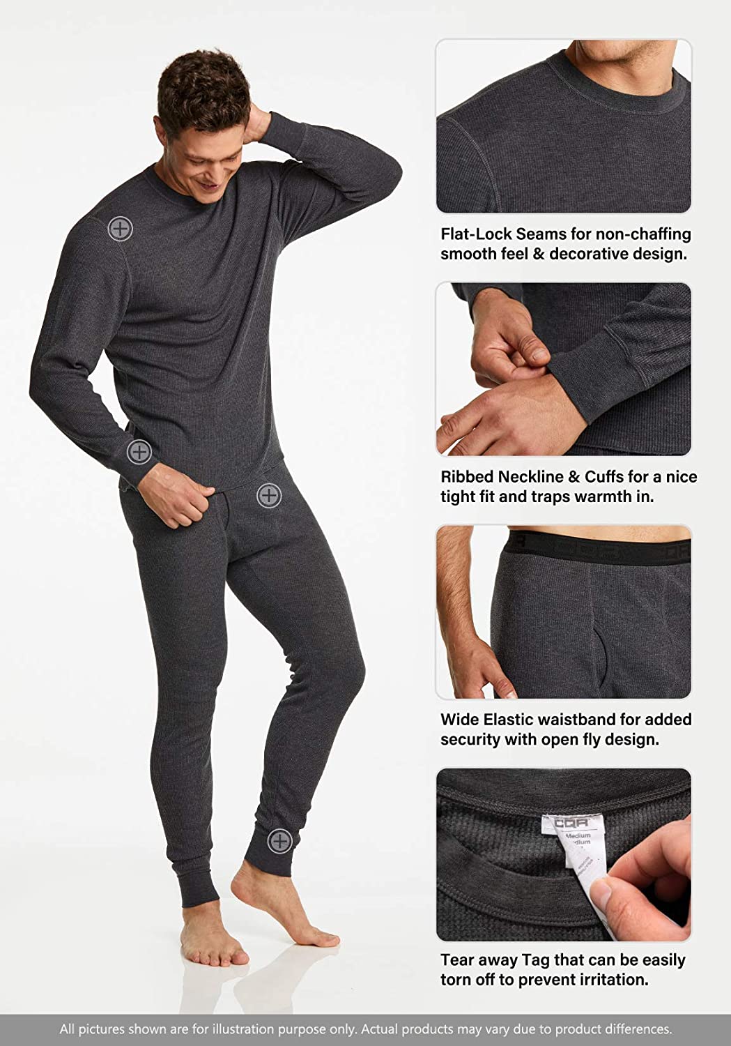 CQR 1 or 2 Pack Men's Long Sleeve Thermal Underwear Tops, Midweight Waffle Crewneck Shirt, Winter Cold Weather Thermal Shirts
