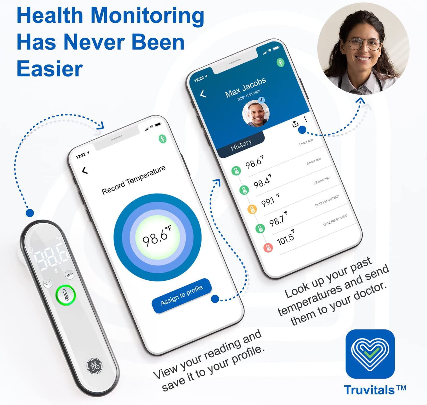 ? DIGITAL INTERFACE WITH FEVER ALERT | Large Backlit LCD Screen is Easy to Read, While Comfort-Grip Device is Effortless to Operate with Simple 1-Button Control [No Complex Settings or Programming] | Built-In Alarm Signals When High Temperature is Detected—Great for Screening. Pregnancy must haves, Newborn essentials must haves. Household essentials.