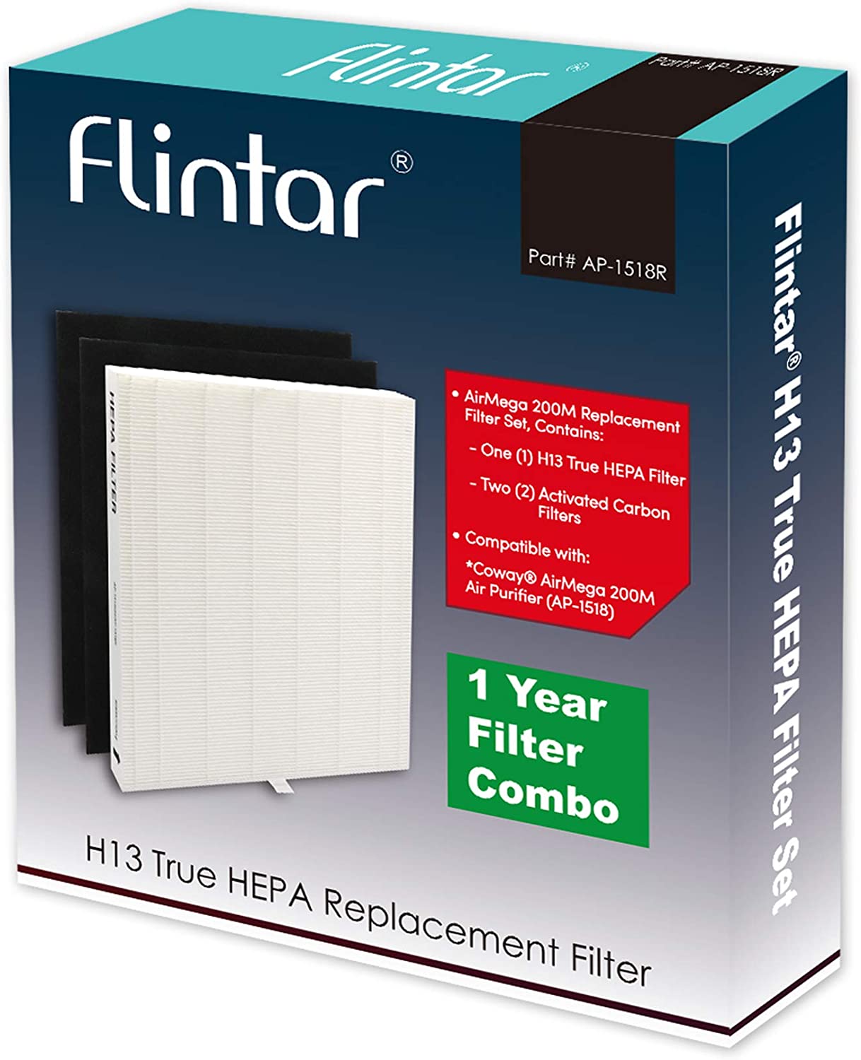 Flintar premium high-efficiency H13 True HEPA Replacement Filter Set is a complete one-year filter pack and fully compatible with *Coway AP-1512HH Mighty and Airmega 200M Air Purifier. This True HEPA Filtration system contains the following filters: