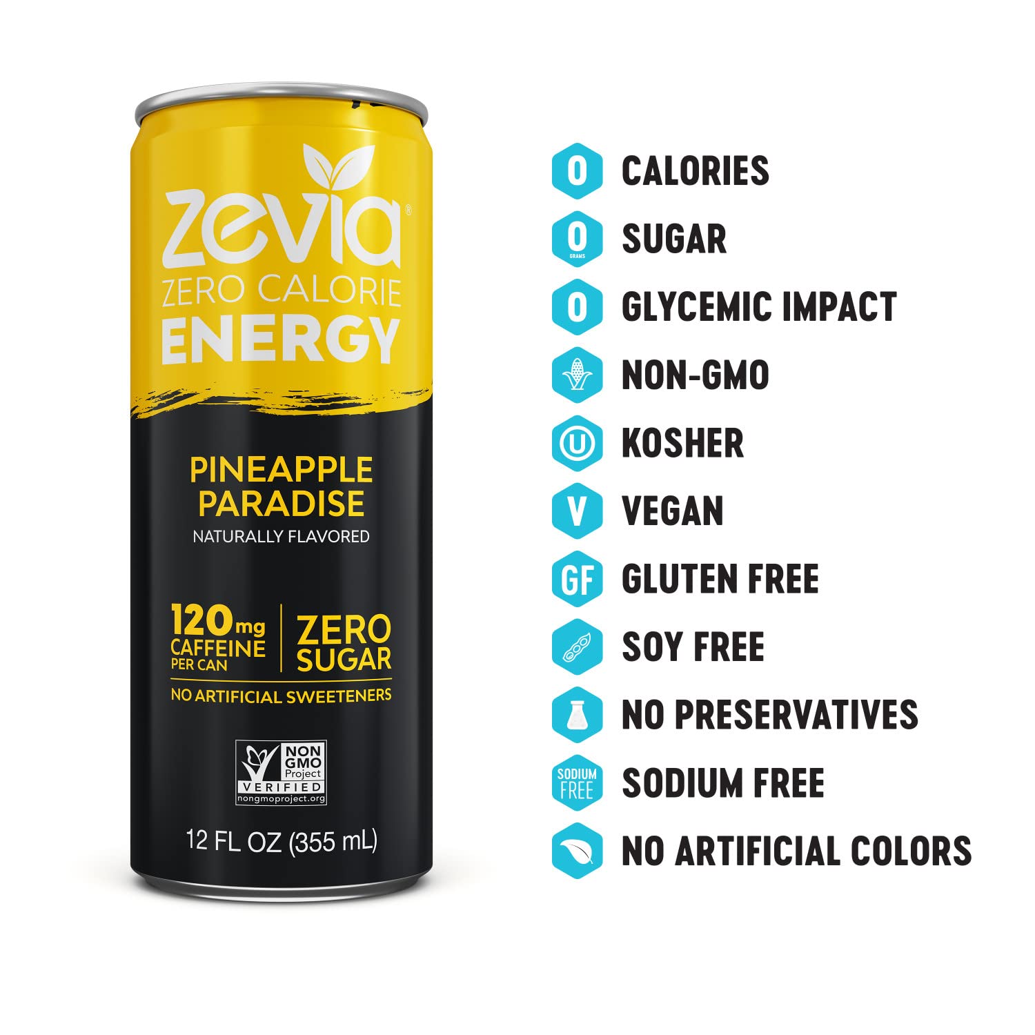 Low Calorie Energy Drink: Whether it’s before or after your workout or keeping up with the kids, power up with a can of Zevia Energy packed with 120 mg of organic caffeine