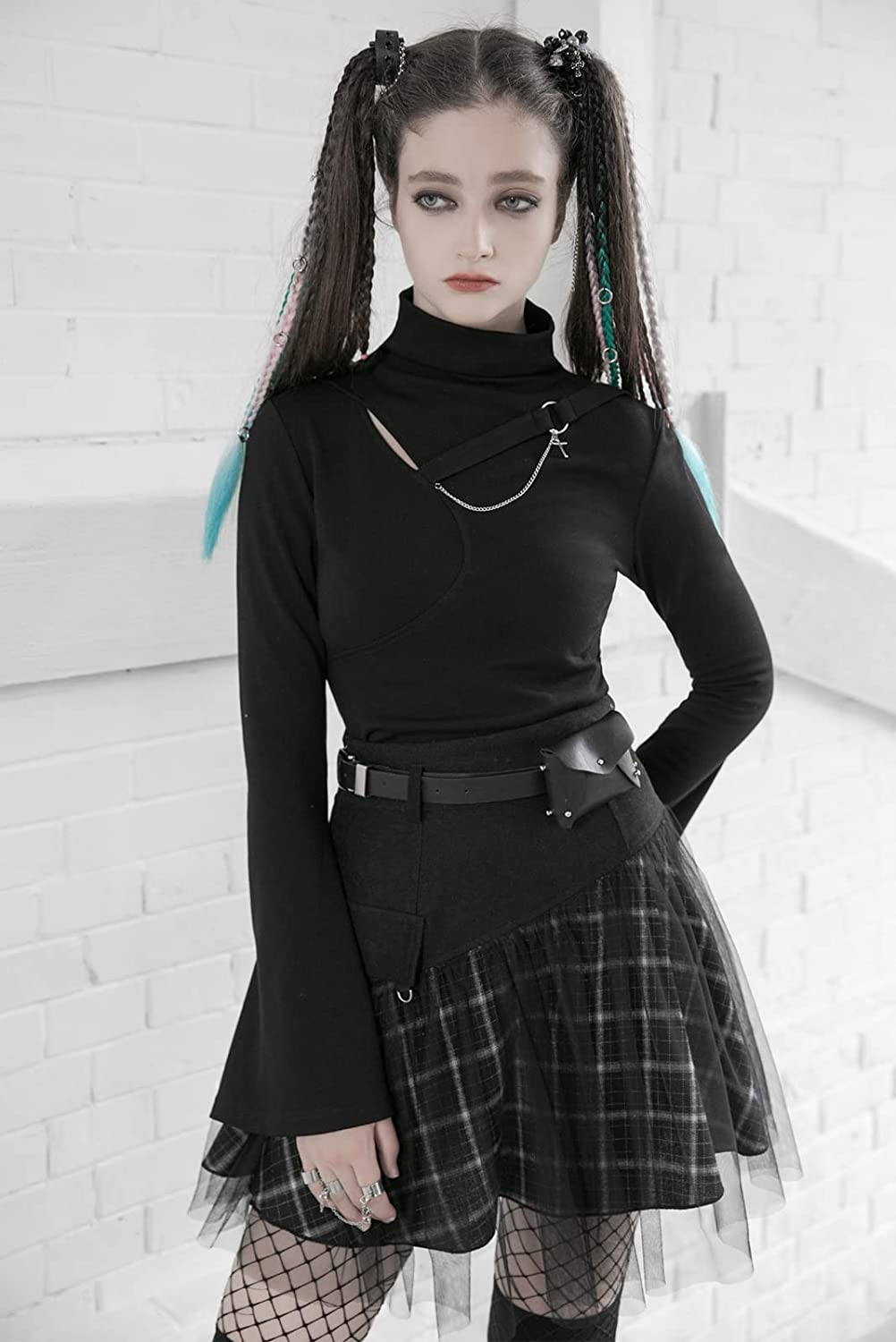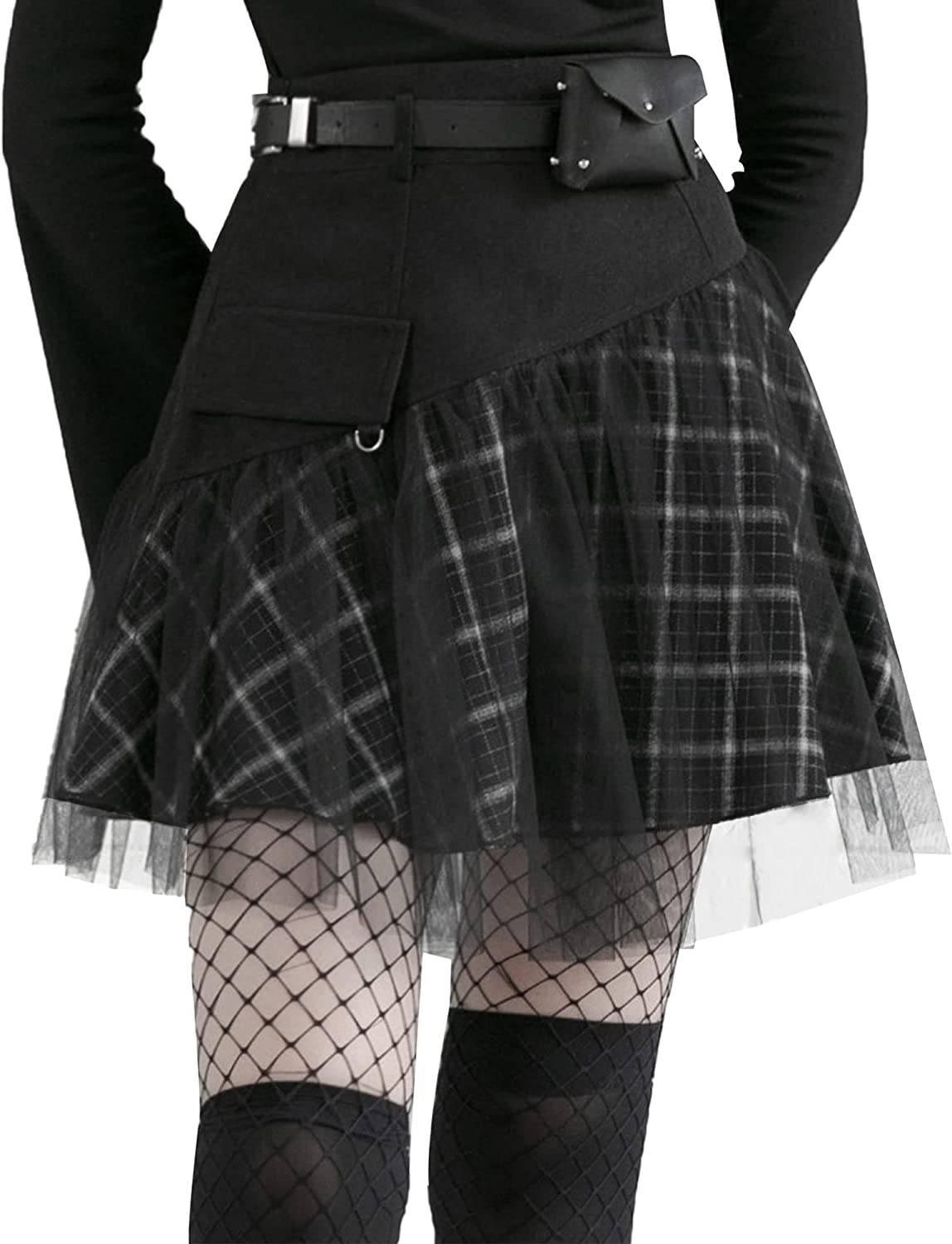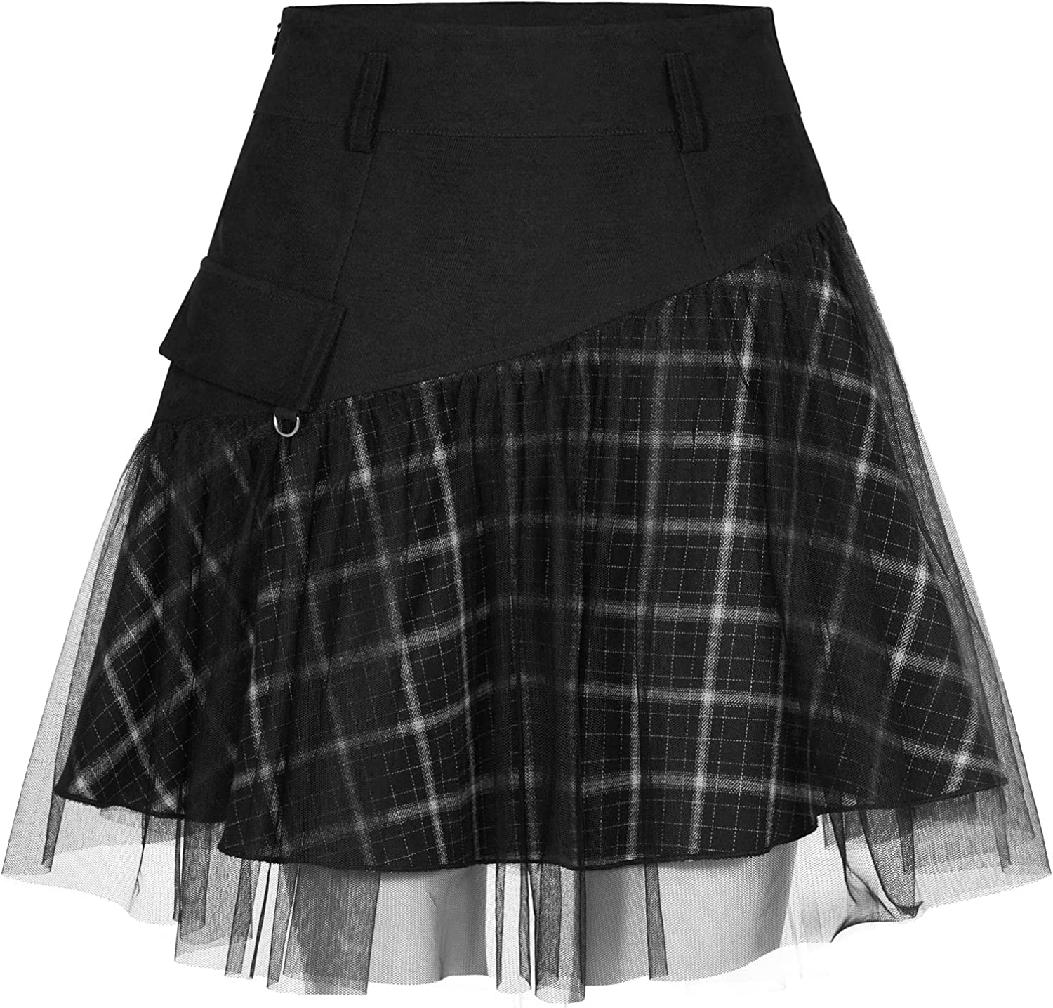 PUNK RAVE DAILY Women Gothic Skirts Women Goth Mini Plaid Skirt with Tulle Punk Dunk High Waist A-Line Party Skirt