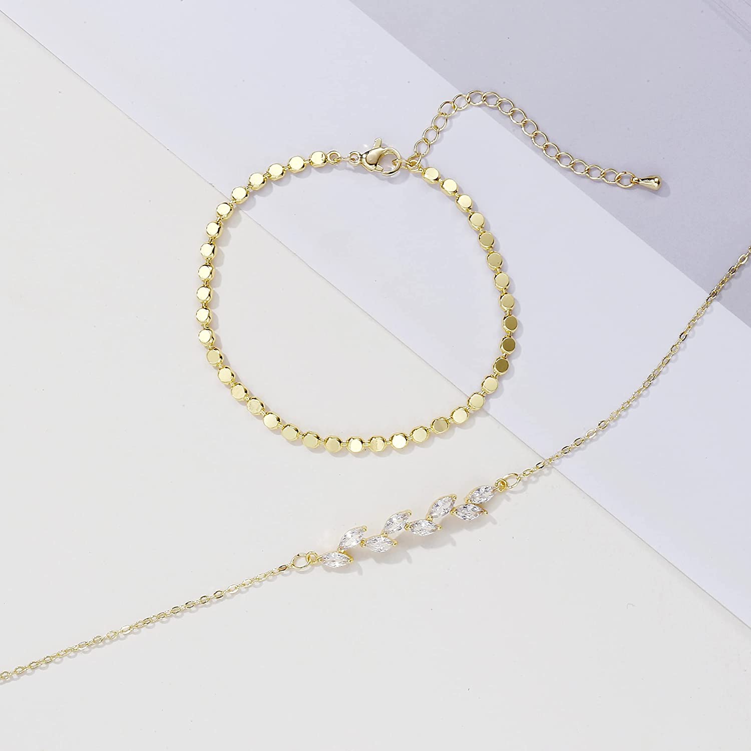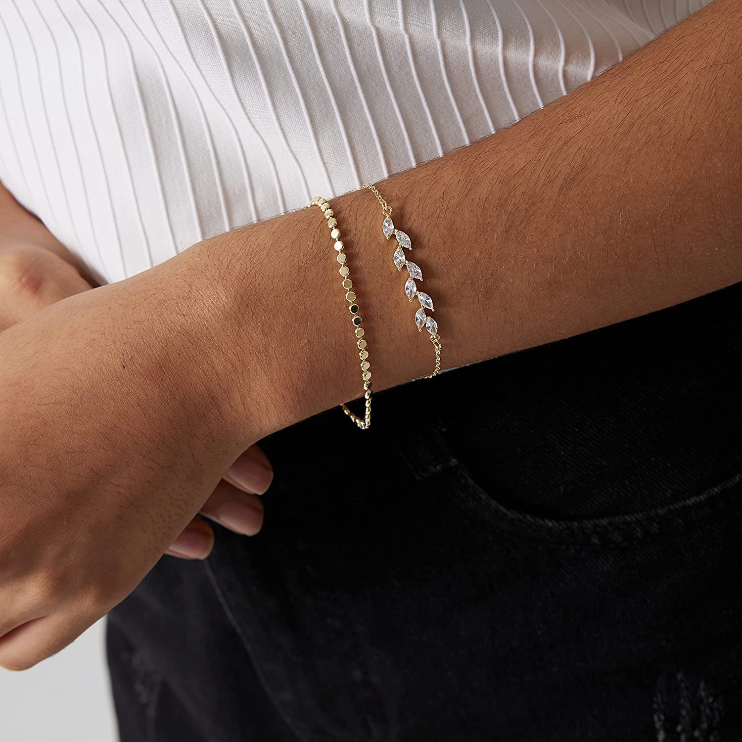 • [ DAINTY DOT LEAVE DESIGN] : Our crystal bracelet + dainty dot bracelet is the perfect layering gift set,free to matching your preferences, and you can wear it to beautify your overall look