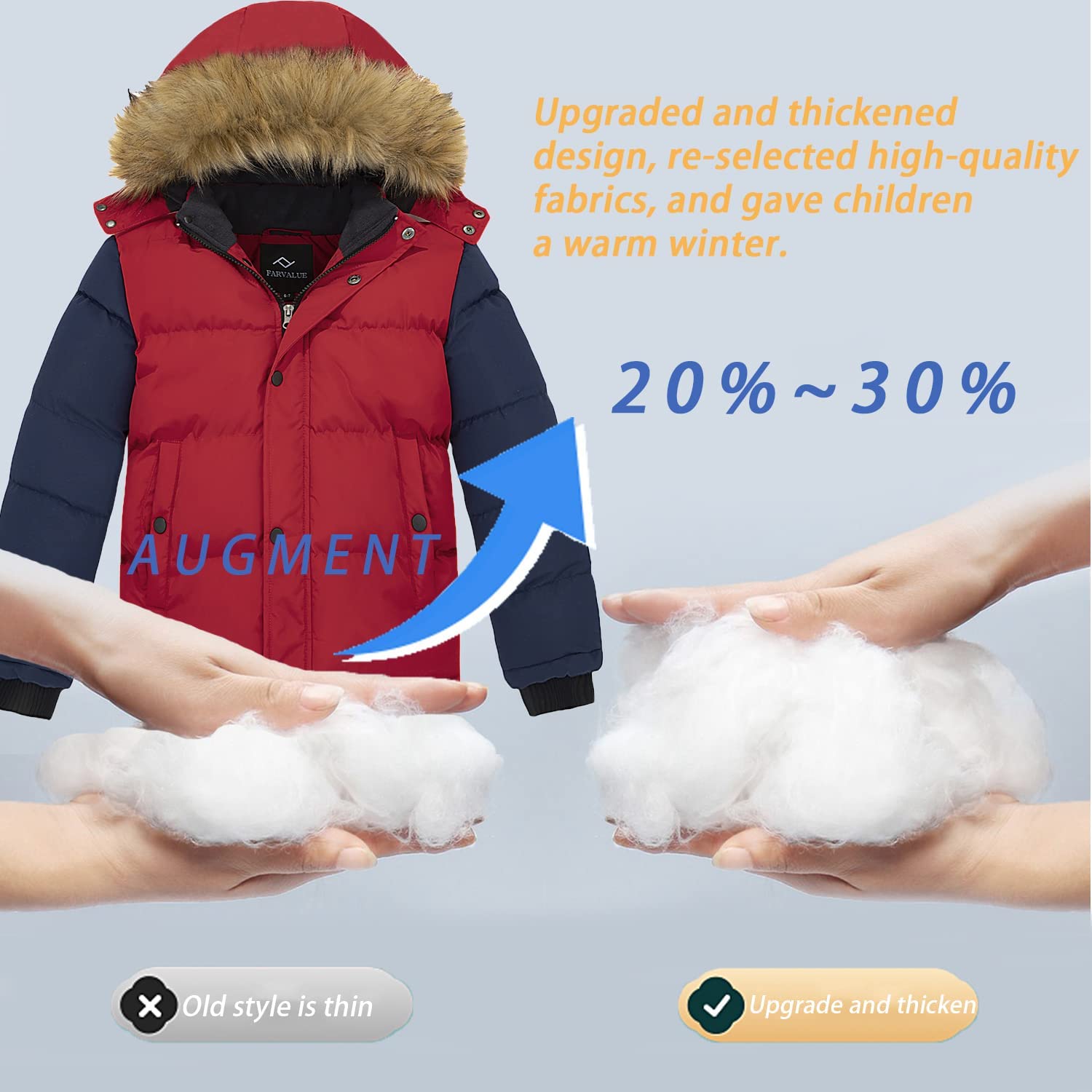 • Upgraded Thermal Winter Jacket: (1) Upgraded to a thick soft fleece lining that is thick and smooth for maximum warmth. (2) Upgraded high-quality insulating cotton pads keep your kids warm.