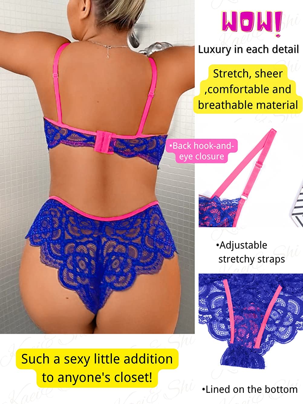 ✿Design: Lingerie set with high leg lace bottom will highlight your legs line. Hook & eye back closure and adjustable straps make it easy for wearing.