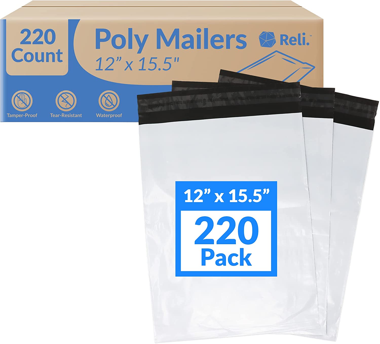 Reli. Poly Mailers 12x15.5" | 220 Pcs - White | Shipping Bags/Shipping Envelopes | White Mailing/Packaging Bags for Shipping | Non-Padded Polymailers, Self Sealing Shipping Bags for Clothing (White)