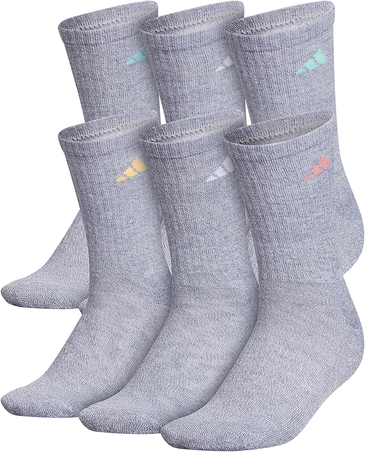adidas Women's Athletic Cushioned Crew Socks (6-Pair) with arch compression