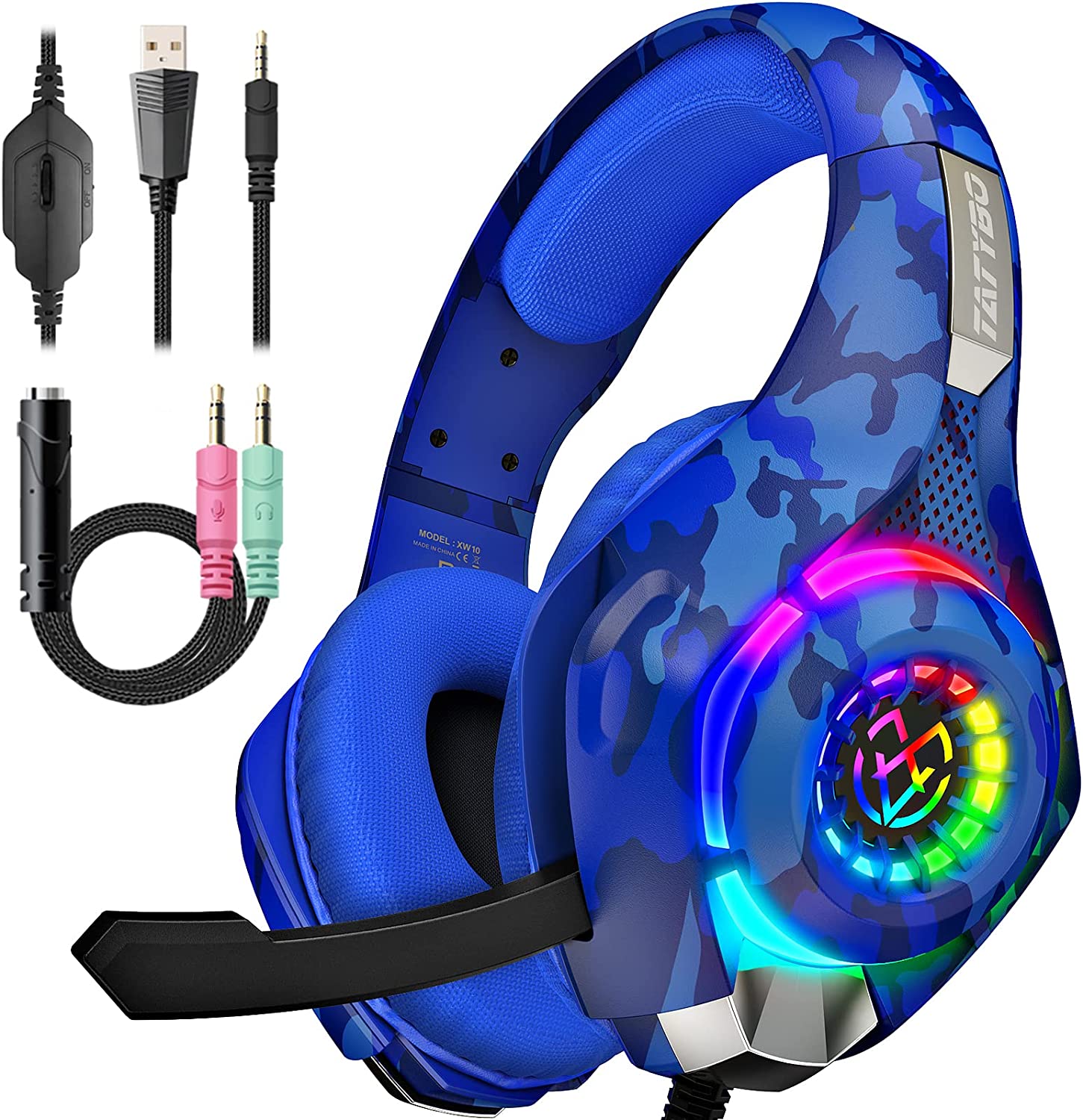 Tatybo Gaming Headset for PS4 PS5 Xbox One Switch PC with Noise Canceling Mic, Deep Bass Stereo Sound
