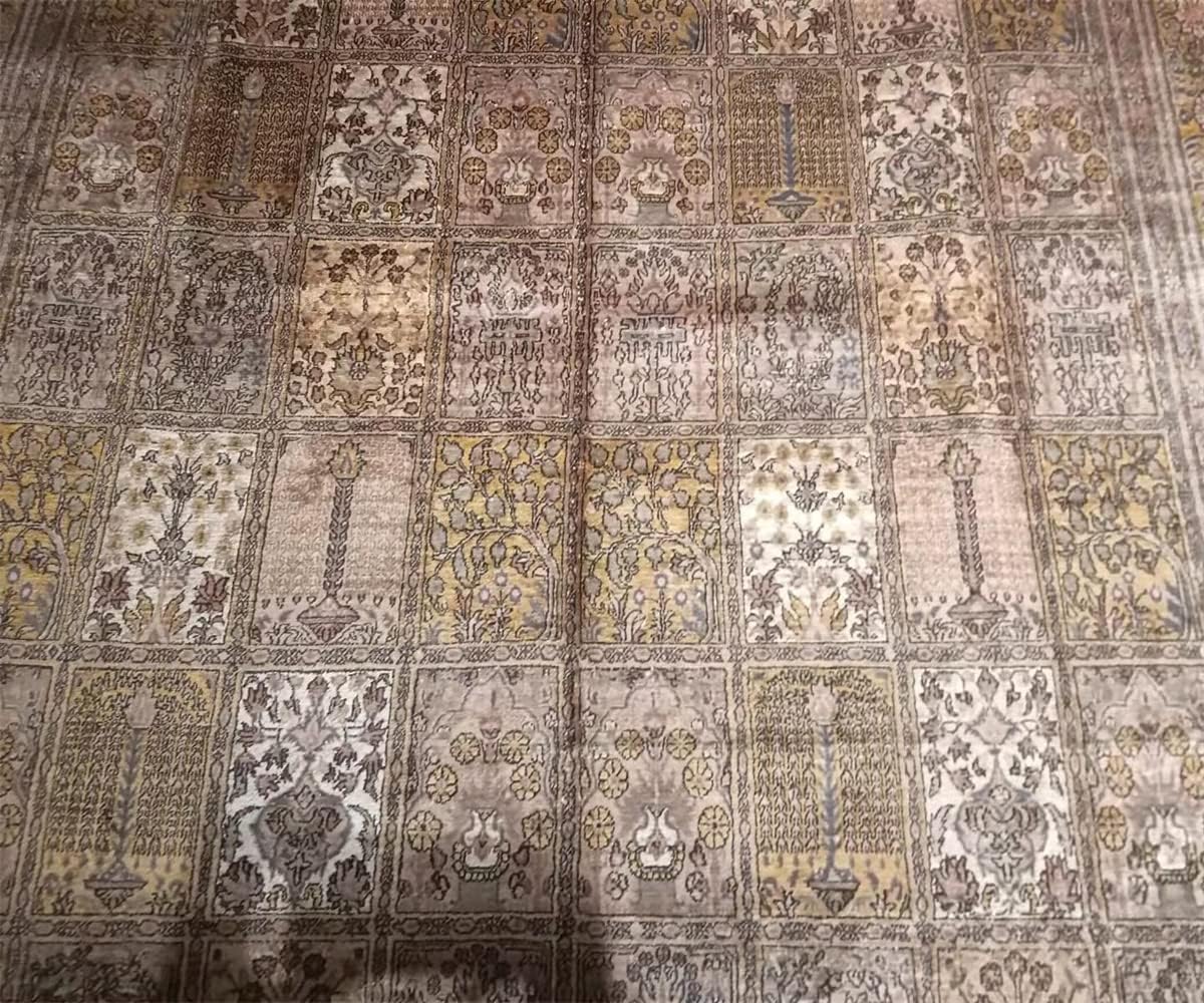 Promise: this Carpet is 100% hand knotted and is never produced by machine. If it is fake, we will compensate you $2000. There is only one piece of this handmade carpet. There is no such carpet that is 100% the same in the world. Only in this way, the carpet can be Auction 5-8 times the price after 10 years.This is great craftsman art Factory Promise