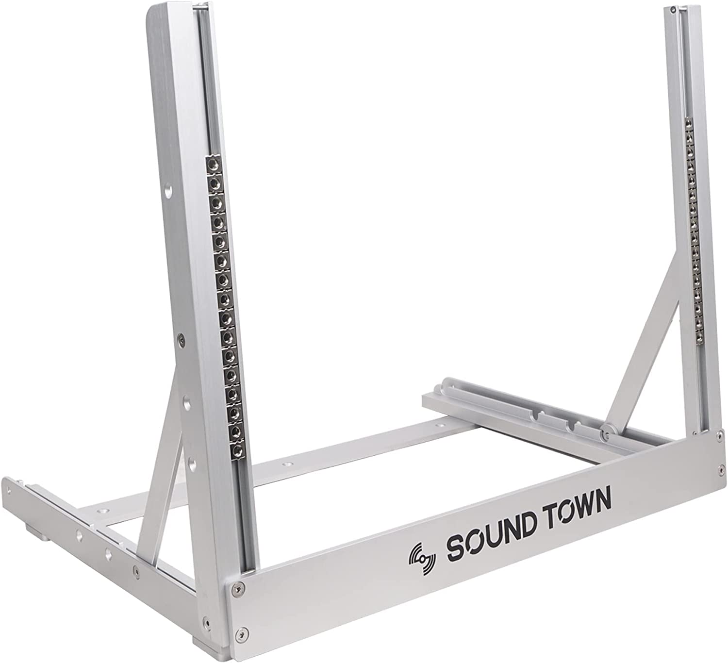 Sound Town 4U Aluminum 2-Post Desktop Open-Frame Rack, Angle Adjustable, for Audio/Video, Network Switches, Routers, Patch Panels (2PF-4A)