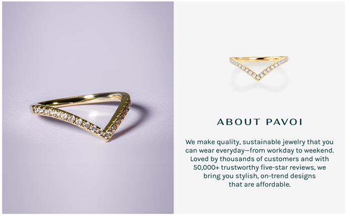 • ✦ SUSTAINABILITY ✦ PAVOI is dedicated to sustainability throughout our entire product cycle. Our jewelry is made from 100% recycled materials and we package in 99% recycled and compostable materials. We work to reduce our carbon emissions and offset plastic consumption by removing 275,000 bottles from oceans annually. We are committed to maintain a balanced and eco-friendly business that minimizes our environmental impact. Trust that PAVOI is continuously working towards a greener future.