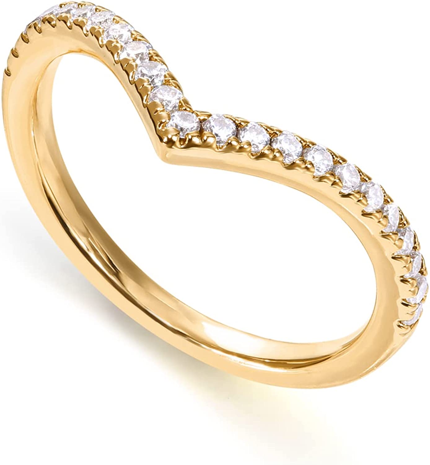 PAVOI 14K Gold Plated Sparkling Wishbone 'V' Ring for Women with Cubic Zirconia