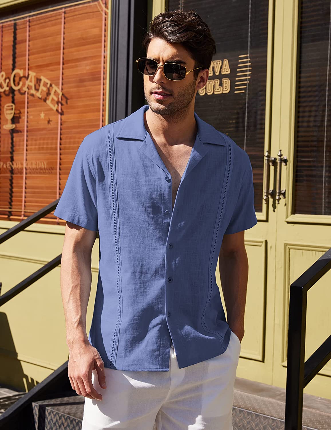 • CASUAL LOOKING --- Linen cuban short sleeve shirts can matched with linen shorts, casual pants, paired with canvas shoes, sandals, and sneakers; also can match chino for beach wedding.