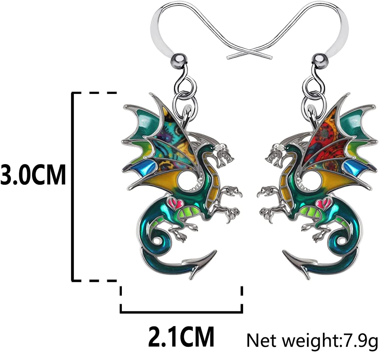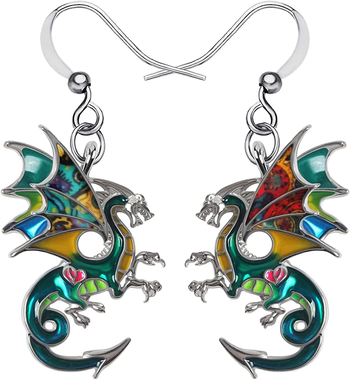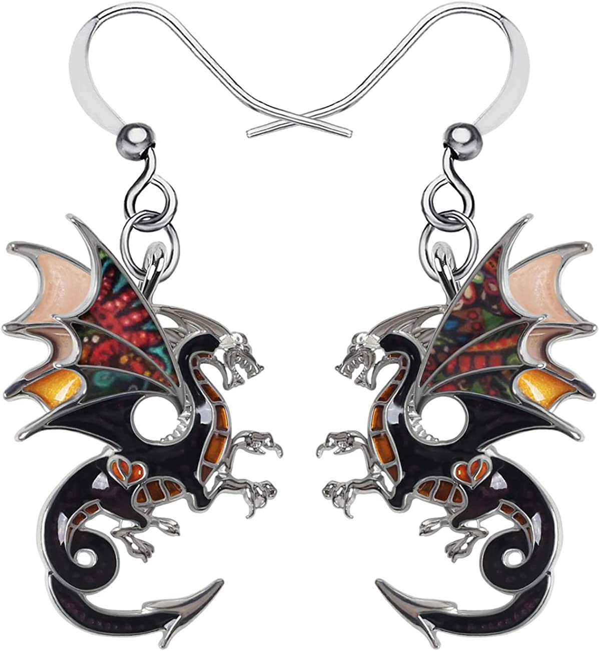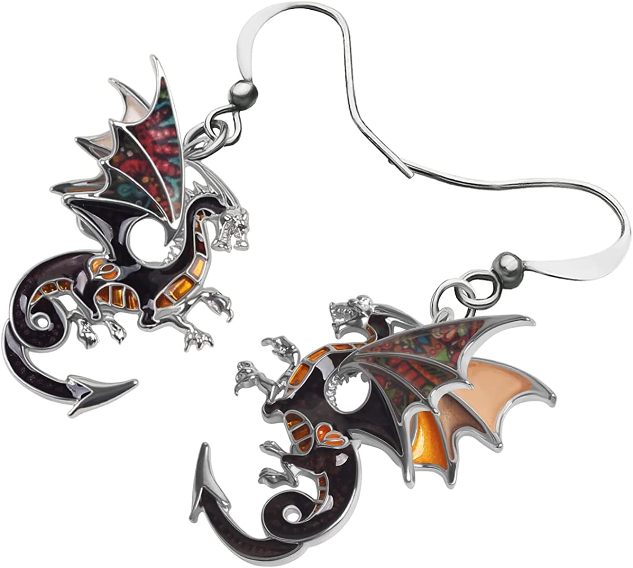 Enamel Alloy Dragon Earrings Fantasy Dinosaur Drop Dangle Fashion Jewelry For Women Girls Charm Gift
