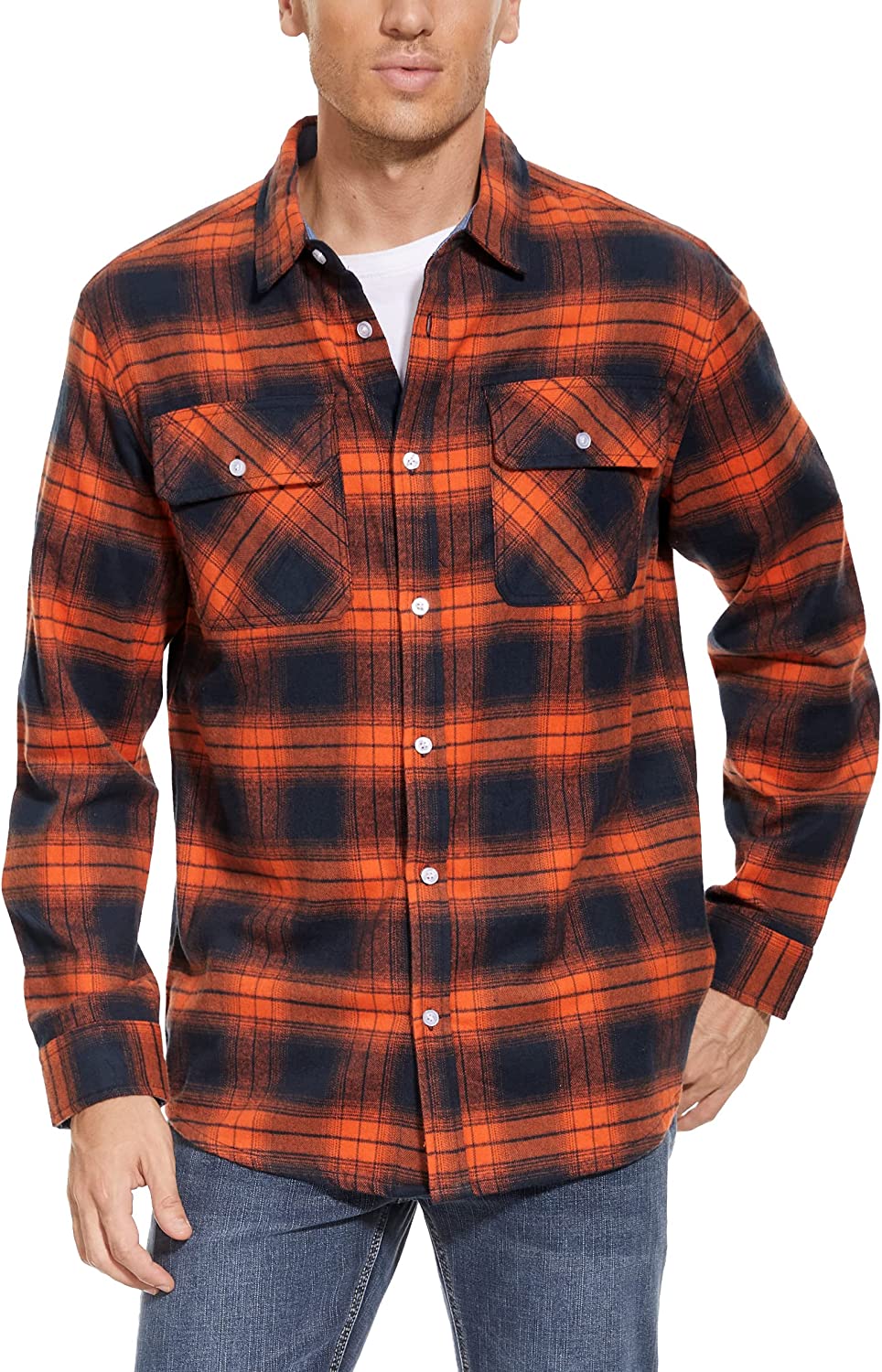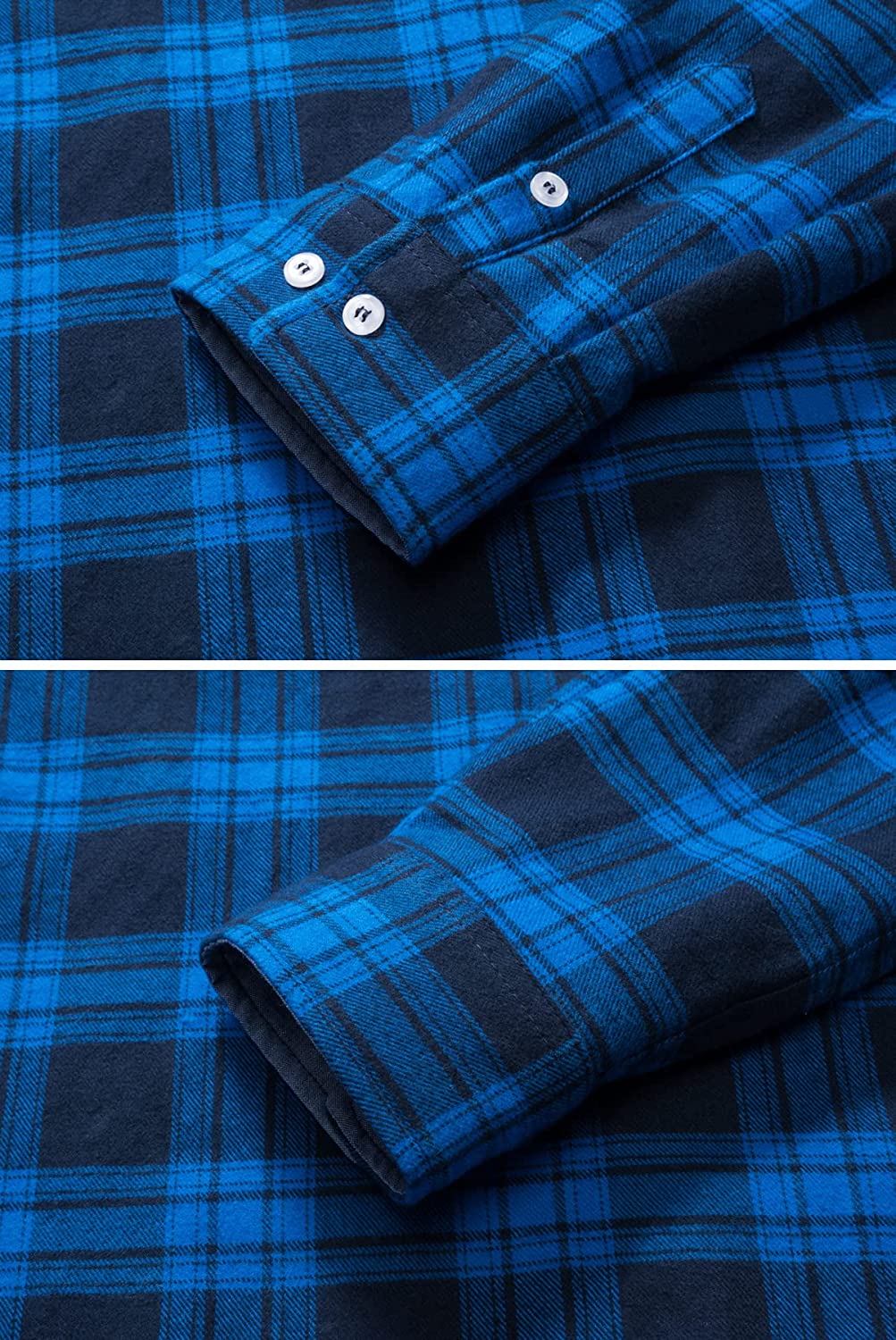 Feature: 2 chest pockets to enough for storing essentials; Rounded hem; Double-button barrel cuffs; Cotton flannel fabric long-lasting wear.