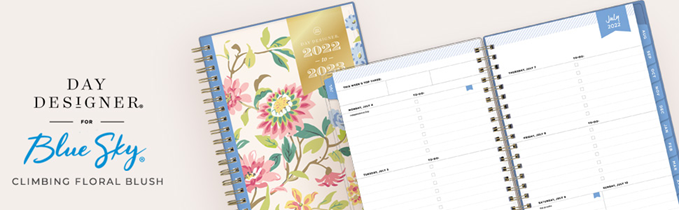 Whether you're a working professional, full-time mom, a teacher or a diligent student, it’s easy to feel overwhelmed and pulled in a million directions. Day Designer for Blue Sky is a simple and easy system created to help you find balance, focus and productivity. This planner isn't magic and it can't live your life for you. But it can, through a simple, guided framework, help you figure out a focus for intentional living. It can be a trusted tool for setting goals, creating a plan and taking action each and every day. This exceptionally built planner exudes quality, design elements and inspired productivity in one well-organized ensemble. It will teach and guide you with a clear path and directions to organize your day, your tasks, assignments, and to-dos to achieve your goals. This academic planner is ideal for business professionals, teachers, professors, administrators, students or anyone involved in education. You will feel more organized and in charge of your hectic schedule, while carrying this harmoniously built Day Designer for Blue Sky planner. The Climbing Floral Blush pattern with gold foil detail will make a subtle fashion statement with friends and peers around you. A well-designed day is a well-lived life! Blue Sky creates modern and sophisticated organizational planners and calendars to fit the scheduling needs of busy people - whether business professionals, college students, teachers, or anyone with appointments to make note of. Keep your life organized with our full line of products including desk pad calendars, wirebound tabbed weekly and monthly planners with contacts and notes pages to accommodate your scheduling needs, and laminated two-sided wall calendars, all in a variety of colors and patterns to suit your lifestyle and personality.