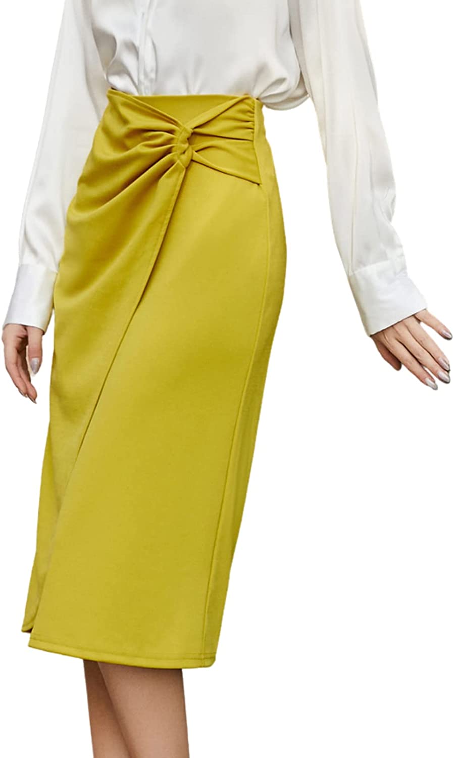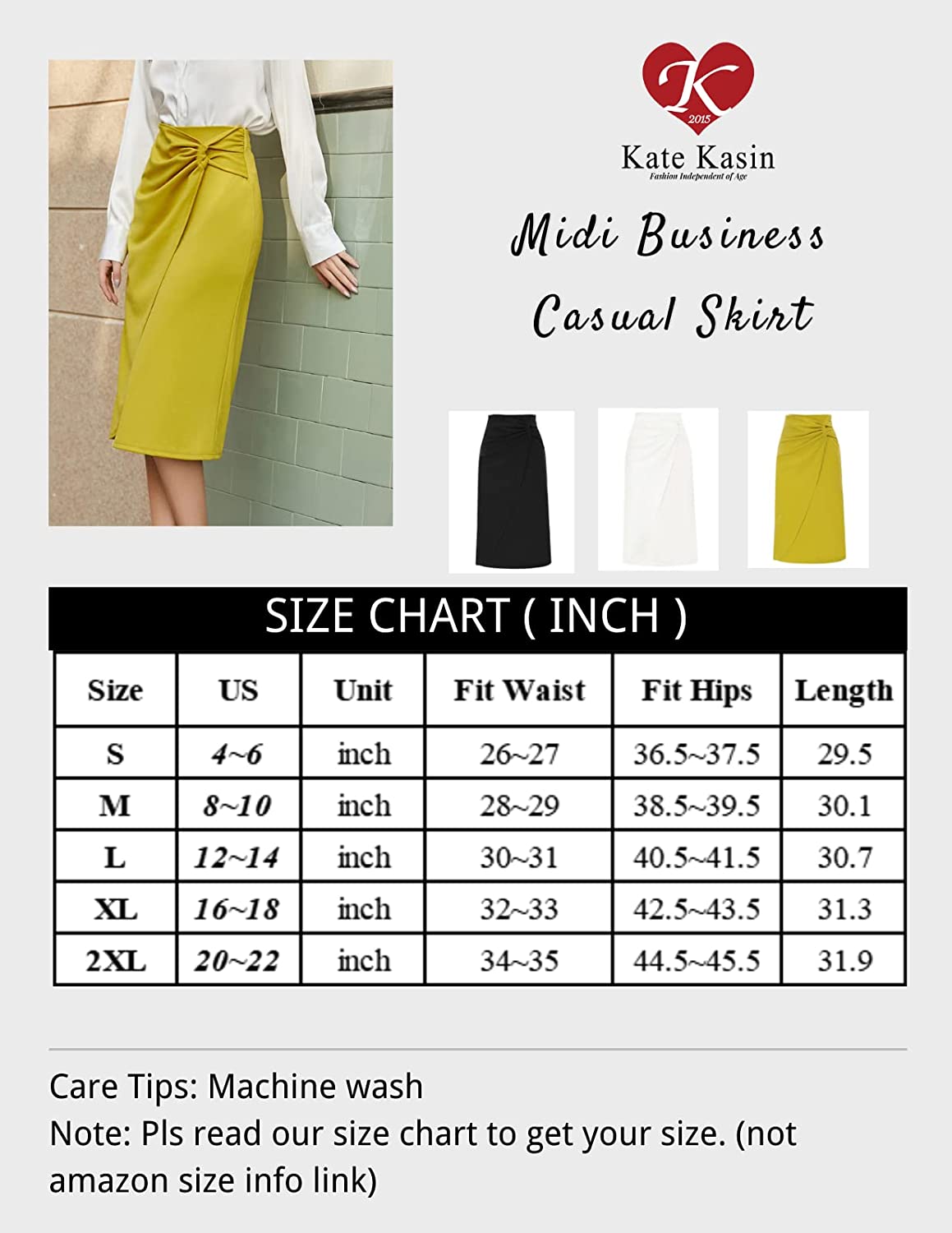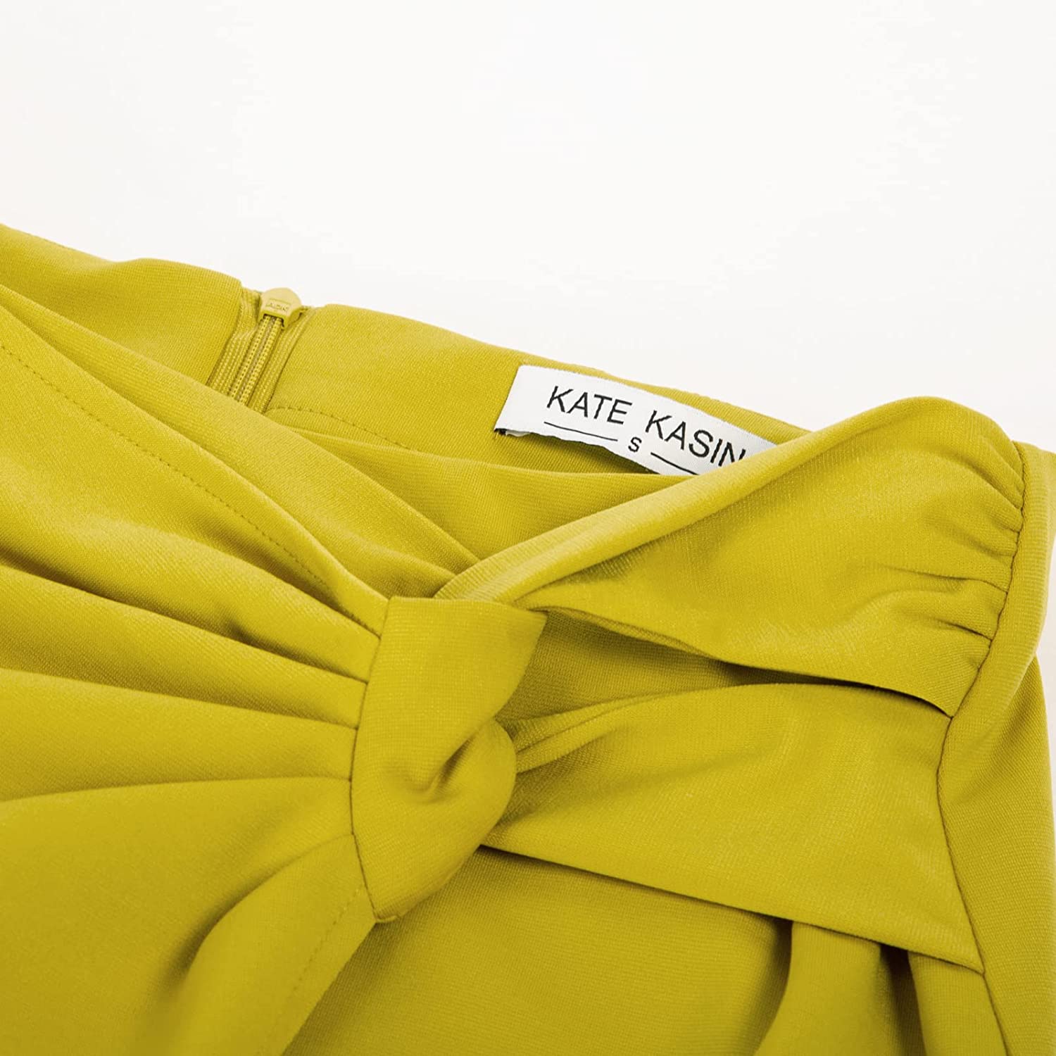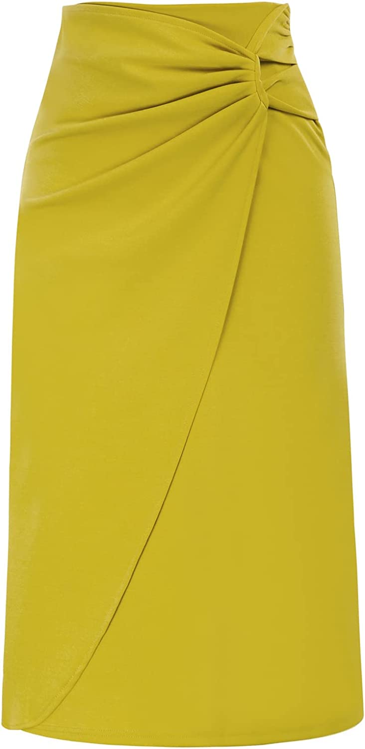 Kate Kasin Women's Knot Side Ruched Elegant Midi Skirt High Waist Business Casual Skirts