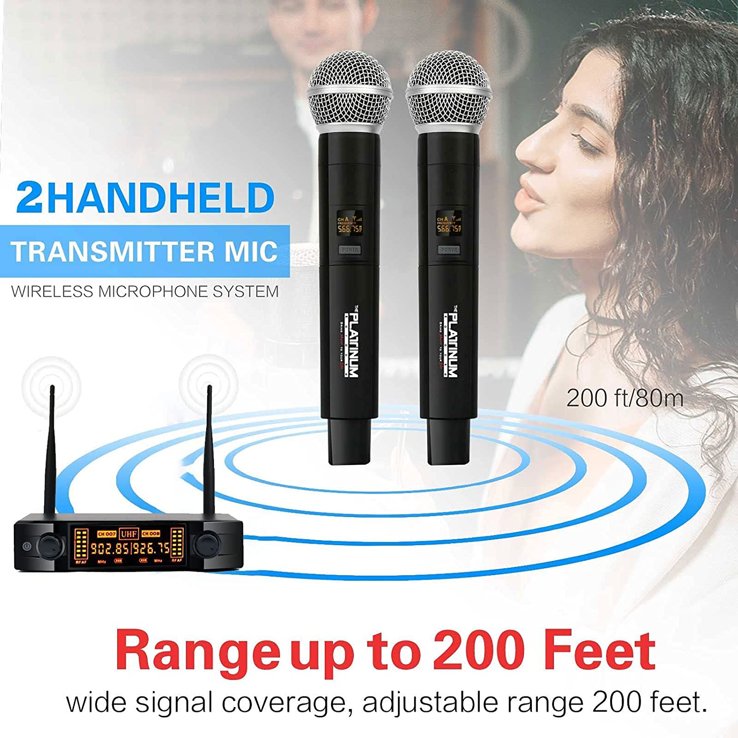 The Platinum Wireless Microphone System, Metal Professional Dual Channel Handheld Dynamic Mic System with Professional Karaoke Receiver, for Party, KTV, Meeting, Wedding, DJ, Church,200ft