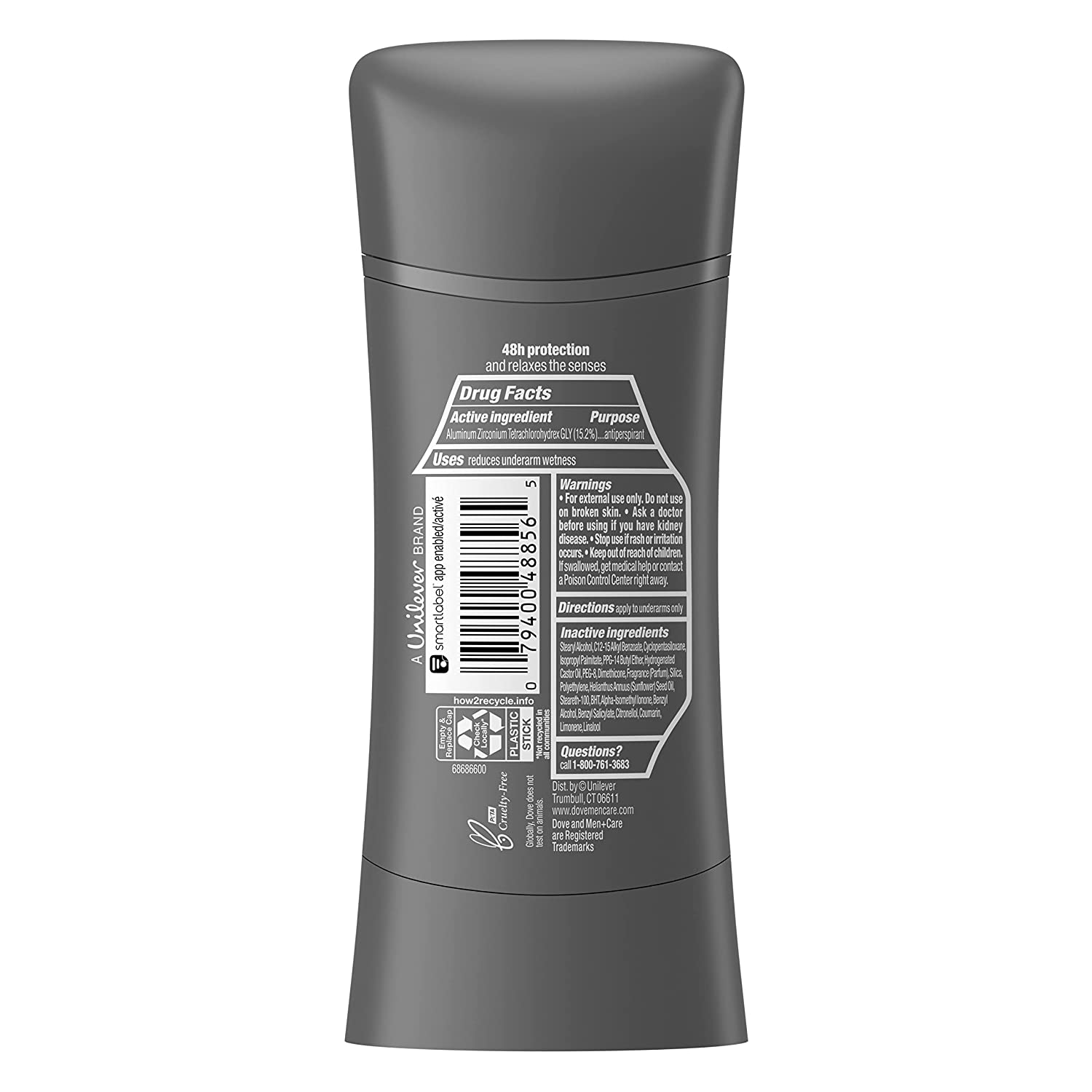 A natural inspired deodorant with 48-hour protection against sweat and odor, and lasting freshness - that's the Dove Men+Care antiperspirant Sea Salt and Wild Lavender. For men who want protection that works through busy, active days, this antiperspirant deodorant is made to leave you feeling fresh and dry for a full 48 hours. This deodorant for men is one of the strongest defenses against sweat and odor, with natural essential oil extracts, our plant-based moisturizer and the relaxing aroma of Sea Salt and Lavender. This mens deodorant offers long-lasting performance and comfort because it's tough on sweat, but not on the skin. Swipe with ease to experience a smooth glide and keep your underarms feeling fresh for the long-lasting protection that you need. You can also rest assured that Dove's global commitment to sustainability means this deodorant is cruelty-free, with no testing done on animals. To complete your grooming routine, explore the entire Dove Men+Care Plant-Based Care range. Whether it's the Dove Men + Care Charcoal Clove Body Wash or the Dove Men + Care Turmeric + Fresh Mandarin, there are many options to pair this deodorant with. You can also choose from Dove Men + Care 0 percent Aluminum deodorant sticks and sprays.