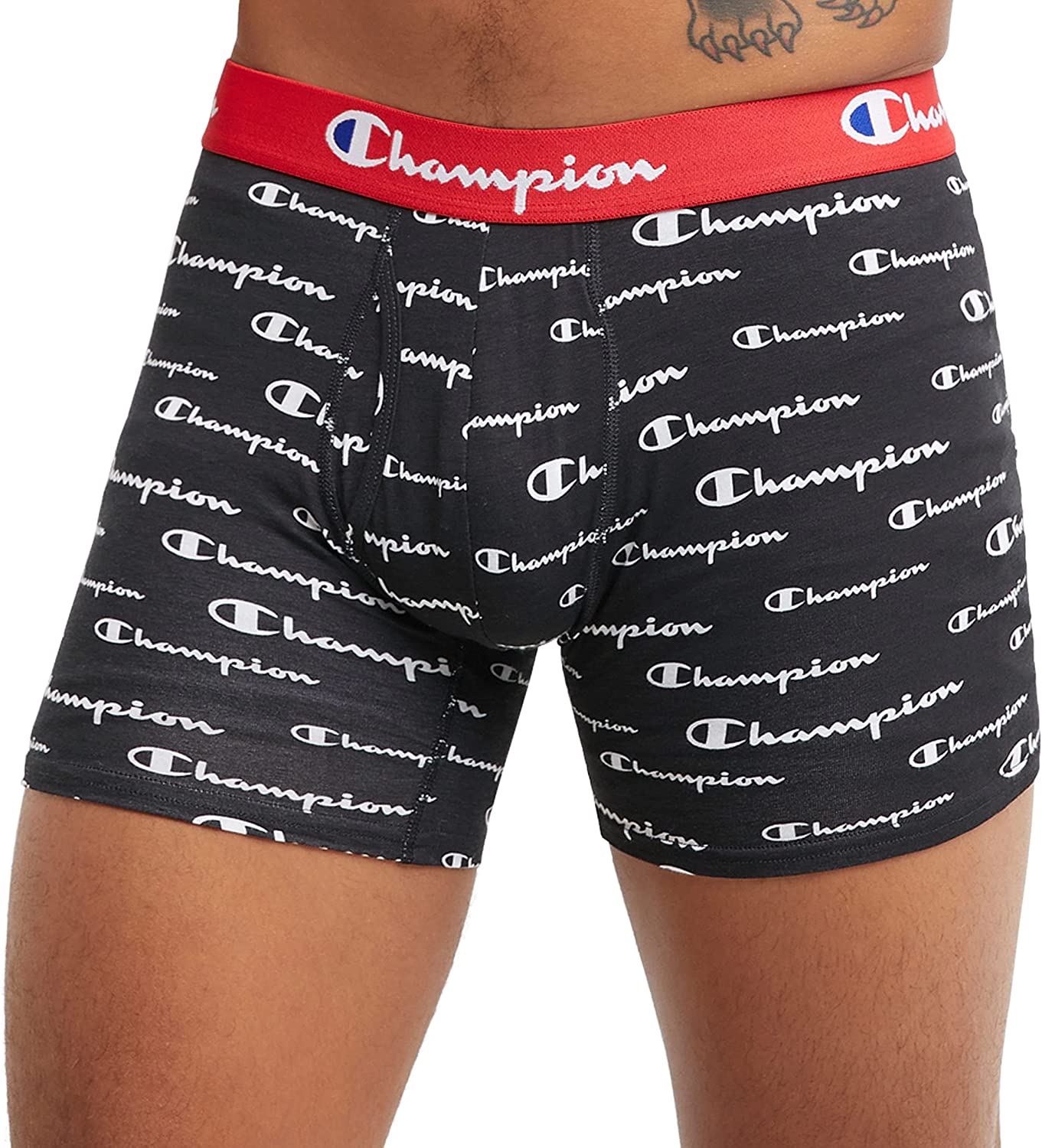 95% Cotton, 5% Spandex Imported Pull On closure Machine Wash VALUE PACK - Get more bang for the buck when you buy a trunks for men pack featuring 3 pairs of men’s cotton trunks with contrasting branded waistbands. STRETCH SUPPORT - Boxer brief underwear is made from a blend of polyester and spandex for just the right stretch and light compressive support. MOISTURE MANAGEMENT - Stay fresher and drier with moisture-wicking men’s underwear. CONTROL THE ODER - Made of fabric treated to resist odor-causing bacteria, cotton boxer briefs stay fresher for all-day confidence SAY NO TO RIDE UPS - A stay-put fit featuring hemmed legs means you won’t worry about annoying ride-ups when you’re wearing these comfortable boxer briefs. NO CHAFE ZONE - Smooth, flat seams and a soft, elastic waistband combat irritation in this anti-chafing underwear for men. SAY YES TO FRESH - Cooling fabric is treated to resist odor-causing bacteria for all-day confidence. CLASSIC CHAMPION - Show your Champion pride. These boxer briefs feature a repeating script logo on contrasting waistbands. MESH POUCH - Mesh pouch provides advanced support where you need it the most. COLD WATER WASH - Champion recommends machine washing this product in cold water to help reduce energy usage. Show more