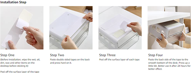 - 【EASY TO INSTALL】 Drill& hole- free self-adhesive under desk drawer is easy to install on smooth wall with two tapes. It perfectly protects your desk or closet from damaging. It arrives with two adhesive strips, press the adhesive tape a bit make sure the tape adheres strongly to the surface.