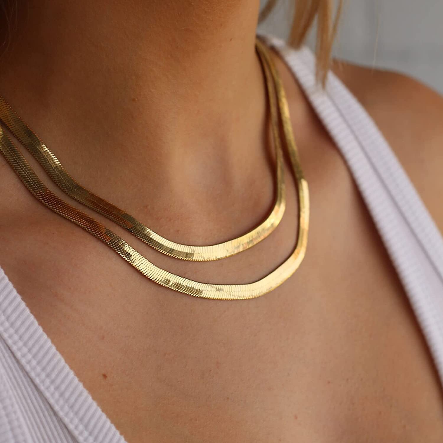 CHESKY 14K Gold/Silver Plated Snake Chain Necklace Herringbone Necklace Gold Choker Necklaces for Women Girl Gifts Jewelry 1.5/3/5MM(W) 14"/16"(L)