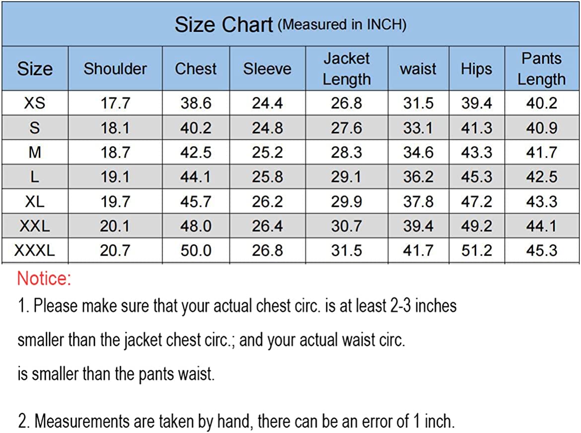 • Multiple Usage--- This men's suit set can be dressed for kinds of occasions, such as wedding, business meetings, fashion shows, prom party, grand holidays and other formal/casual occasions. It will also be a good gift for Father, Brother, Boyfriend, Husband.