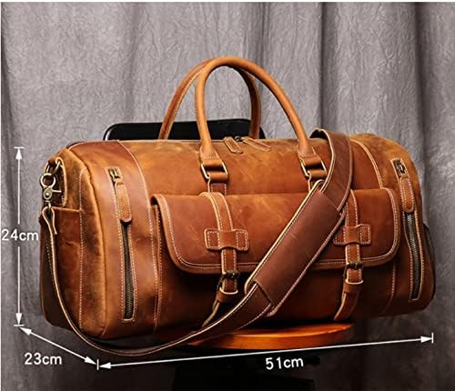 BZLSFHZ Men's Genuine Leather Travel Bag Business Handbag First Layer Cow Leather Gym Bag Leather Duffel Bag (Color : A)