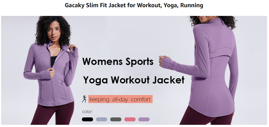 Gacaky Women's Slim Fit Workout Running Track Jackets Full Zip-up Yoga Athletic Jacket with Thumb Holes