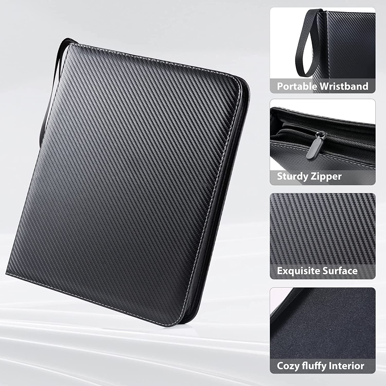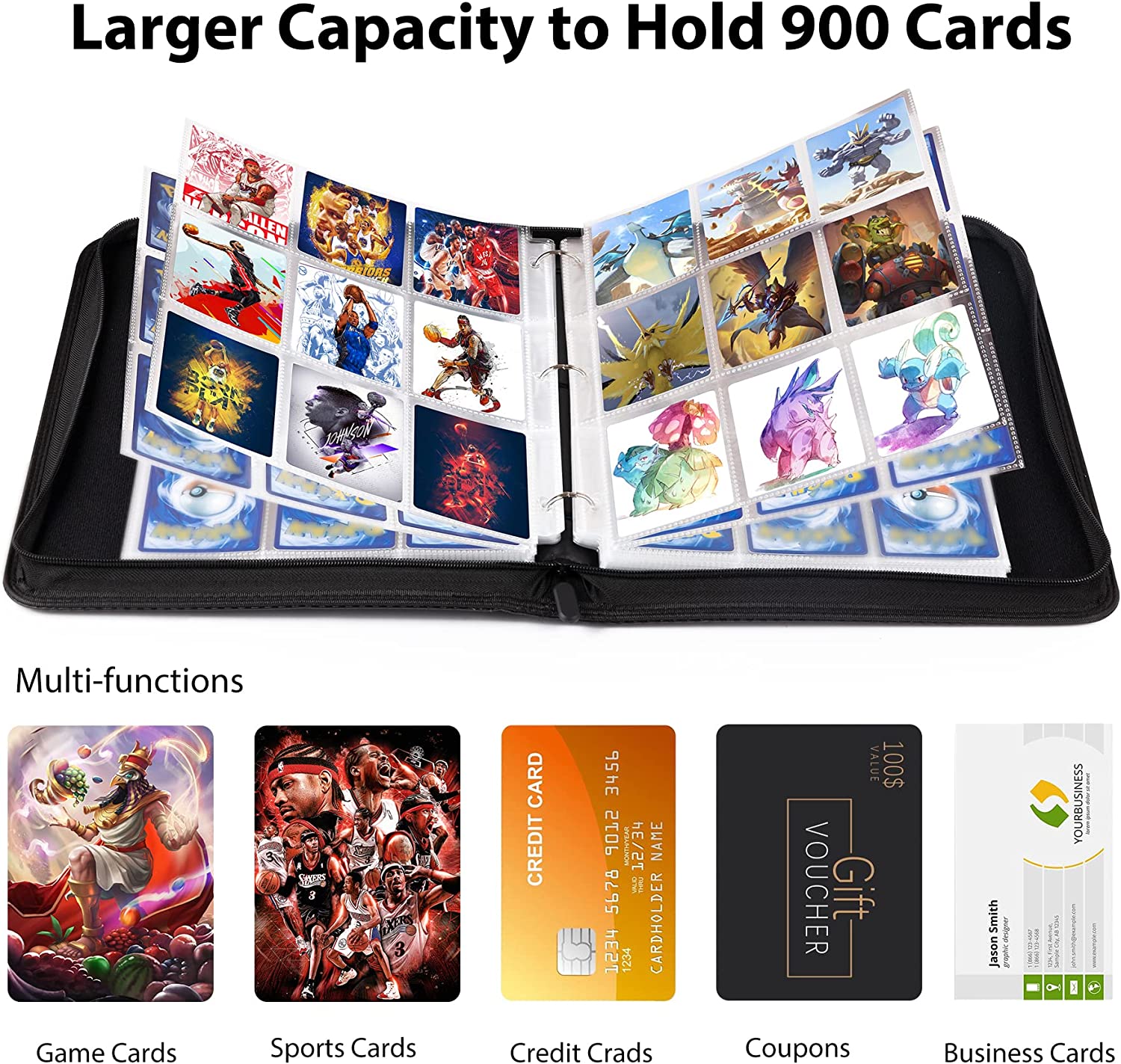 WOT I Trading Card Binder, 900 Pockets Card Binder Sleeves with Zipper, Double Sided Pockets Card Holder Carry Card Case for Baseball Card, Football Card