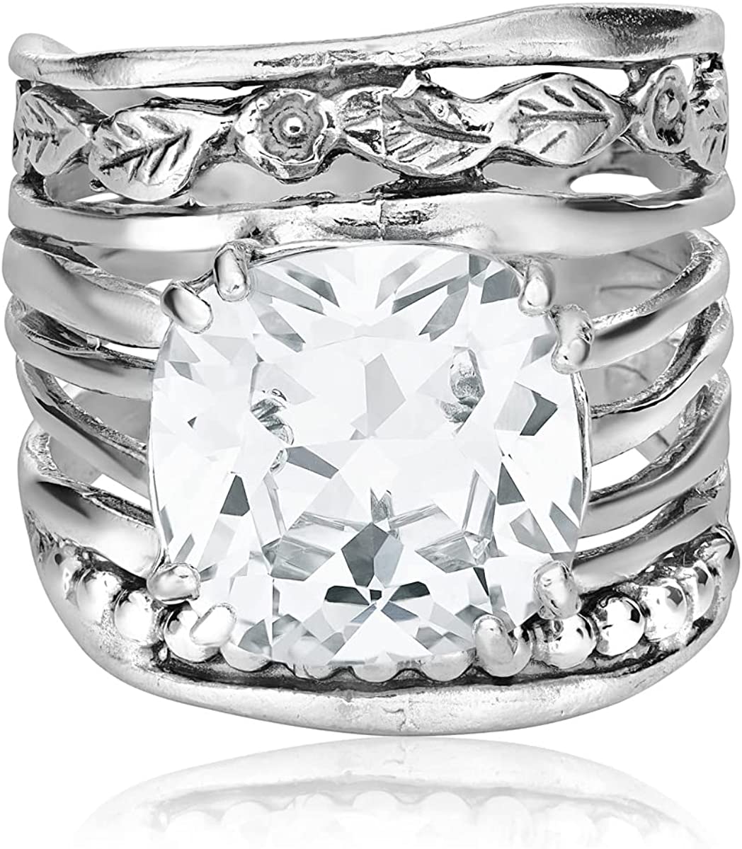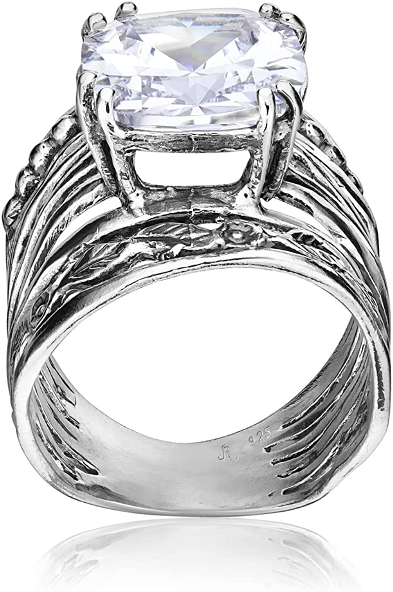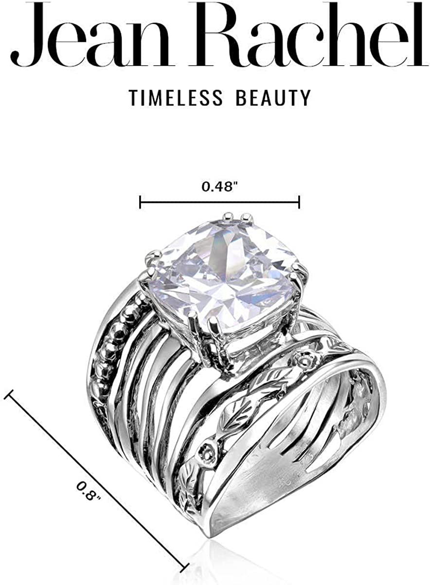 925 Sterling Silver Ring With a 12mm White Cushion Cubic Zirconia CTTW 13.2. Prong Hypoallergenic, Nickel and Lead-free, Facet Cut, Artisan Handcrafted Designer Collection, Made in Israel