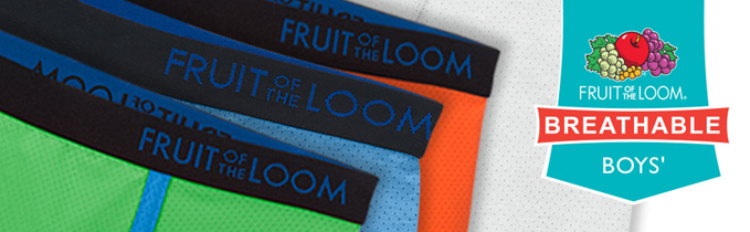 Fruit of the Loom breathable ultra flex boxer briefs feature micro-mesh fabric that promotes air flow, preventing your song from getting hot. These boxer briefs have flexible side panels so they will move with him. The flex panels stretch, making them ideal for your growing boy, fitting him through growth spurts.