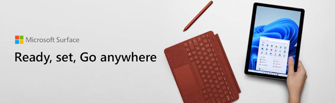 Ready, set, Go anywhere. The most portable Surface touchscreen 2-in-1 is perfect for your everyday tasks, homework, and play. Designed to light up the best of Windows 11, Surface Go 3 is optimized for digital pen and touch, with a choice of a faster Intel® Pentium® or Intel® Core™ i3 processor, plus all-day battery, tablet-to-laptop versatility, and comprehensive Microsoft security.