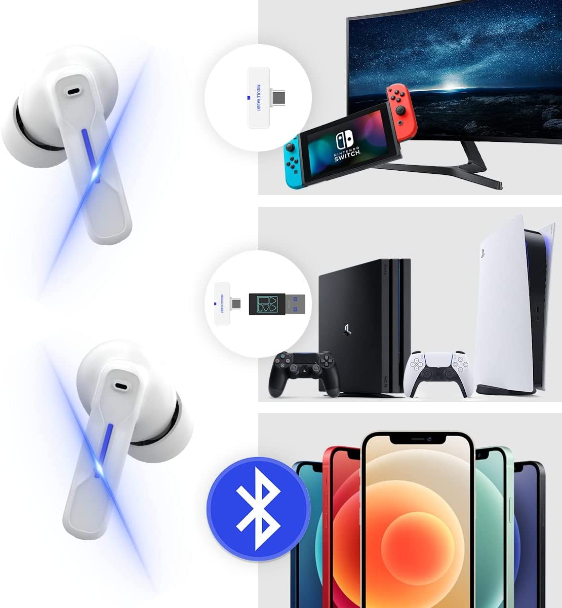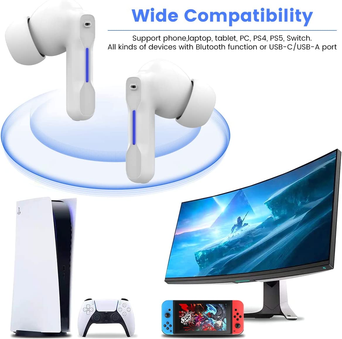 Middle Rabbit SW4 Wireless Gaming Earbuds for PC PS4 PS5 Switch Mobile - 2.4G Dongle & Bluetooth - 40ms Low Latency - Headphones with Built-in Microphone - 4 Mics PC Earbuds - PS4 PS5 Headset