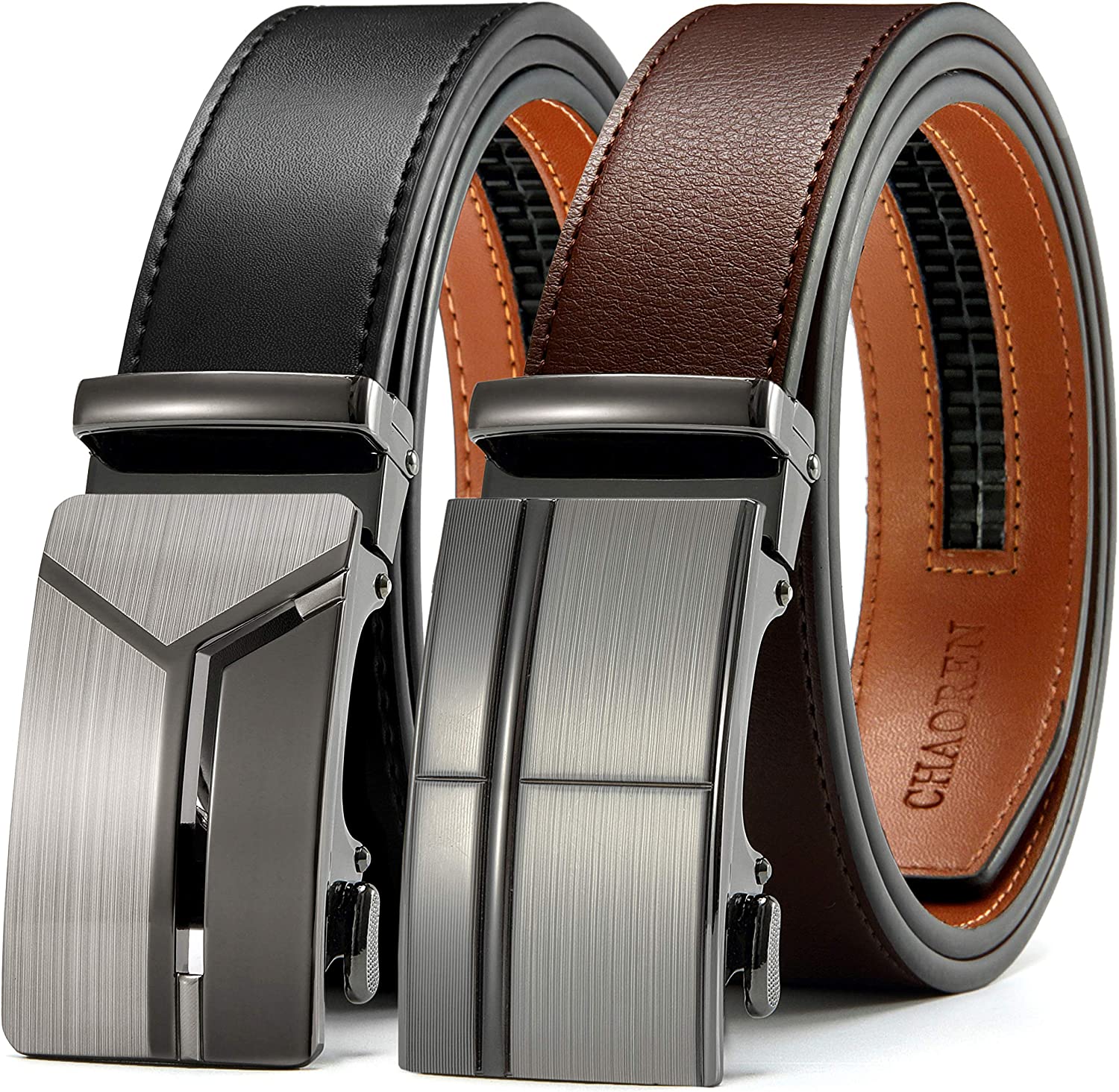 EASY TO USE - Slide the black and cognac belt into the buckle, and click on the buckle to lock it automatically. Gently push the lever on the side of the automatic buckle, and pull the casual jeans belt to release. Simple, smooth, and sleek!