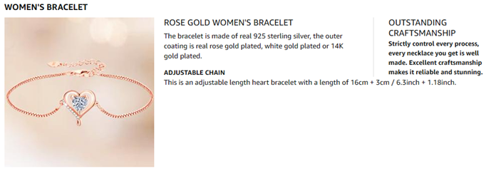 - Heart design: necklace design is elegant and beautiful. It is an eye-catcher and sparkling when worn on the wrist. In the middle a heart is inlaid with 5A cubic zirconia, next to it there is a delicate and small 5A zirconia that reflects the main stone. It stands for love and affection and is perfect as a gift for your girlfriend, family or friends.