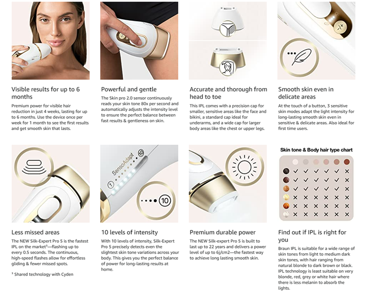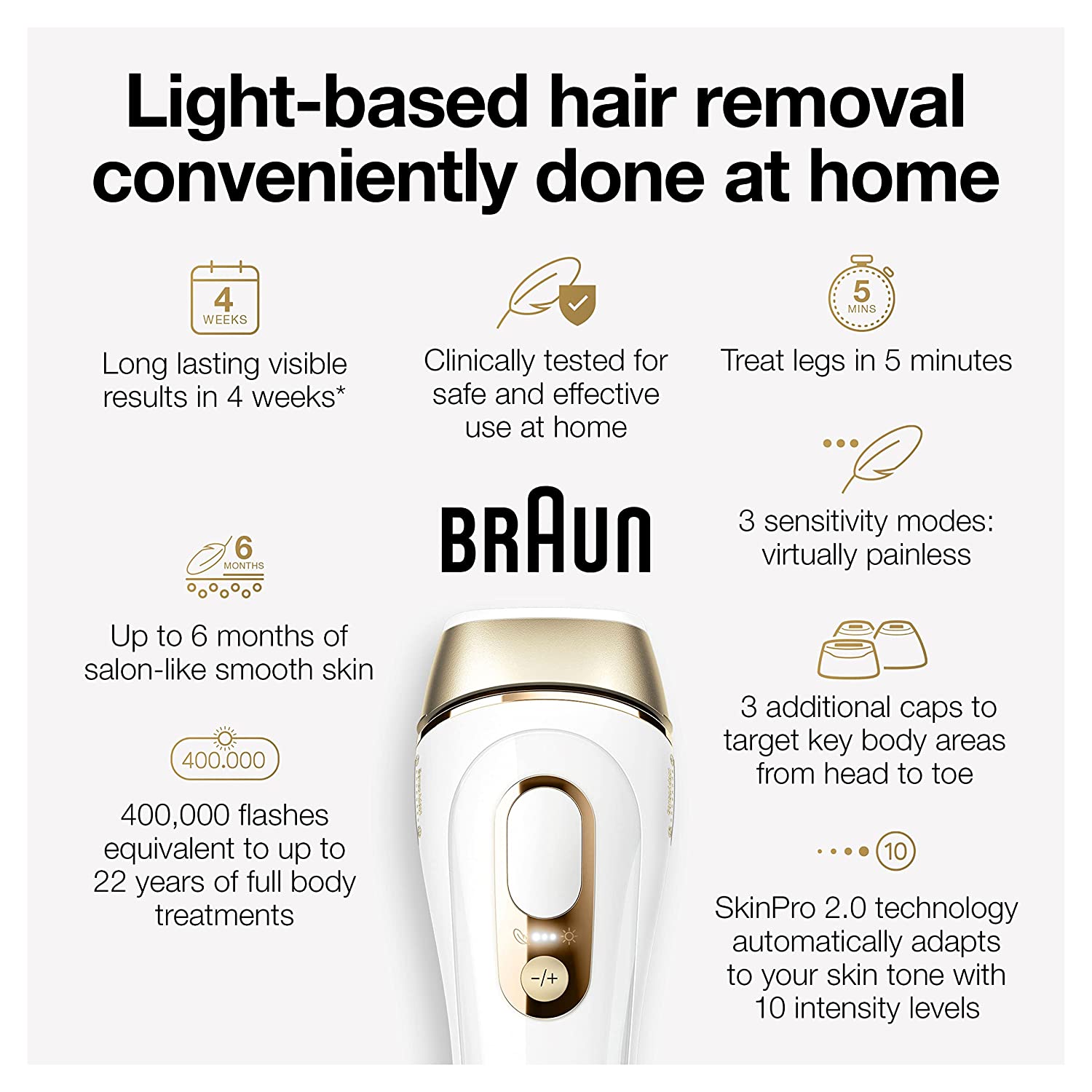 • Enjoy FAST AND GENTLE sessions from head to toe. SkinPro 2.0 technology (SensoAdapt) AUTOMATICALLY OPTIMIZES THE POWER of every flash to your skin tone.