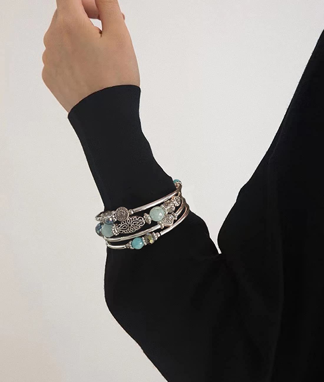 - Excellent Quality: The stackable bracelets made of High-quality environmentally friendly alloy, electroplated silver elbow and crystal glass faceted beads, etc. Exquisite workmanship, the surface texture is fresh and natural, and it has the luster of pure silver. Every piece of jewelry are all handmade by the jewelry factory. Therefore, we can carry out quality supervision well at each stage