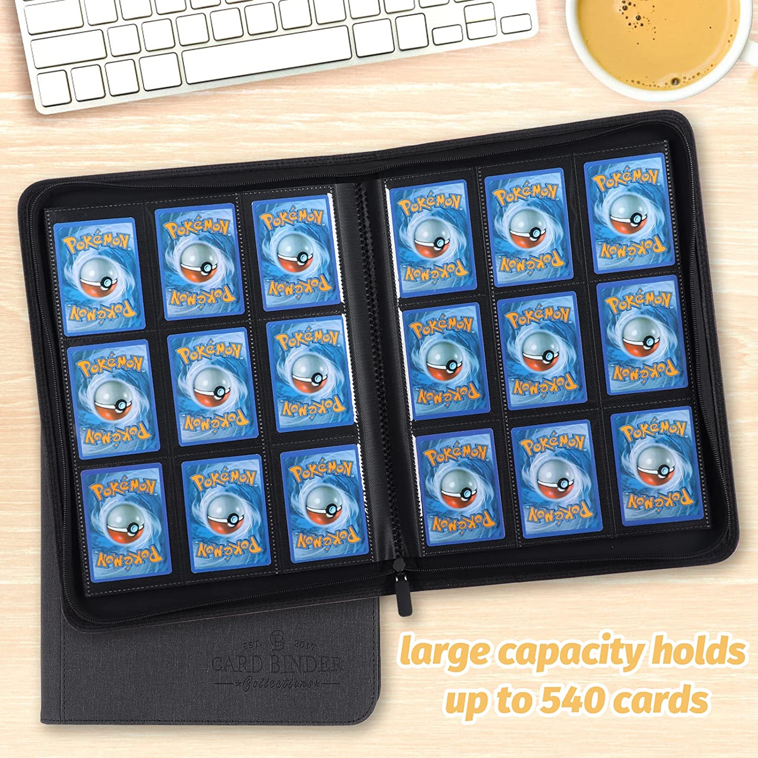 【Large Card Storage Capacity】9 pocket per page premium quality zip-u trading card binder.30 pages, It means that it can hold 540 cards,providing plenty of space to get all your cards organized.