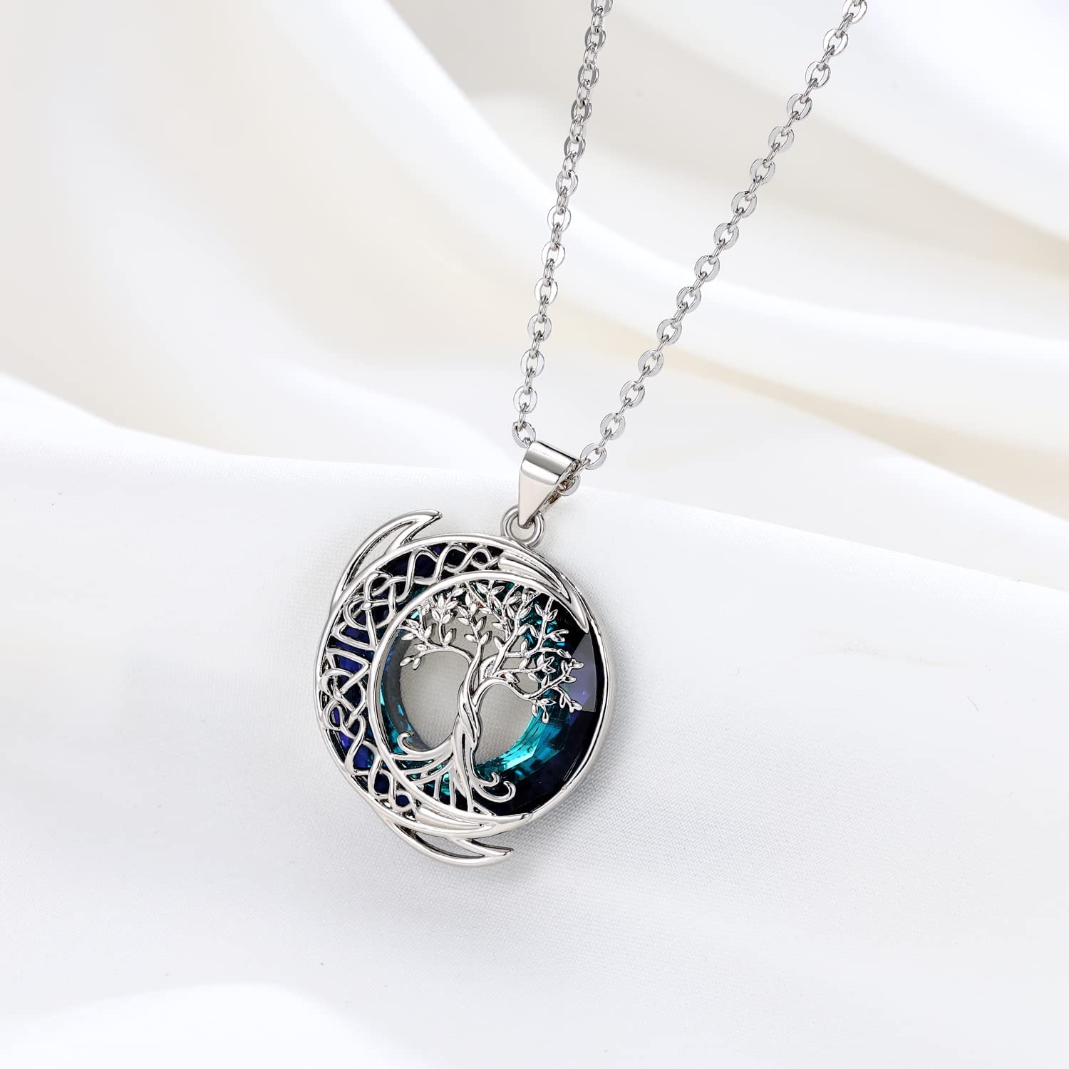 Kattepote Moon Tree of Life Necklace S925 Sterling Silver Crystal Tree of Life Pendant Necklace Celtic Knot Full Moon Tree of Life Women's Jewellery Gift