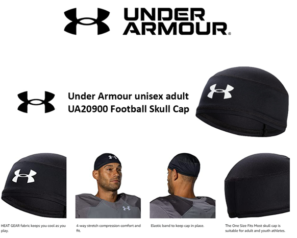 Pop it on under your helmet and hit the field with the Under Armour Football Skull Cap. HEATGEAR technology keeps you cool so you can focus on the game, and the 4-way stretch compression fabric ensures comfort and a perfect fit. The elastic band ensures a snug fit that won’t move out of place. The One Size Fits Most skull cap is suitable for adult and youth athletes, and comes in either white or black. Protect yourself from heat, sweat, and discomfort with the Under Armour Football Skull Cap.