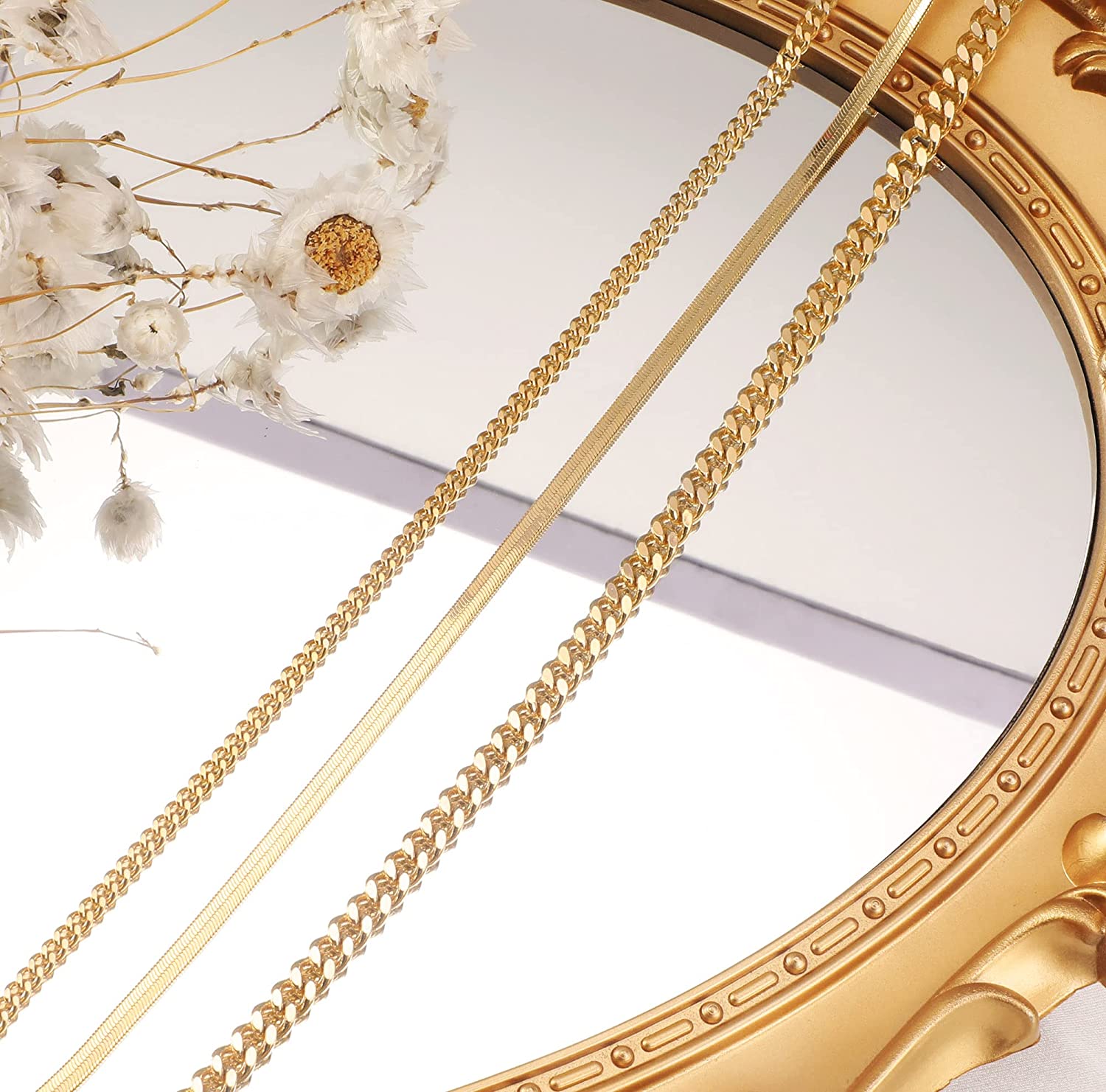 - 【3Pcs GOLD ANKLETS SET】:? Set contains: ①Thin gold cuban link anklet ② thick gold cuban link anklet ③herringbone anklet. These anklets are suitable for layering as well as being worn alone.