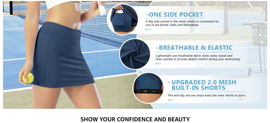 Double Layers: Skorts Skirts for Women with built in shorts,give you some security from sports/Elastic.