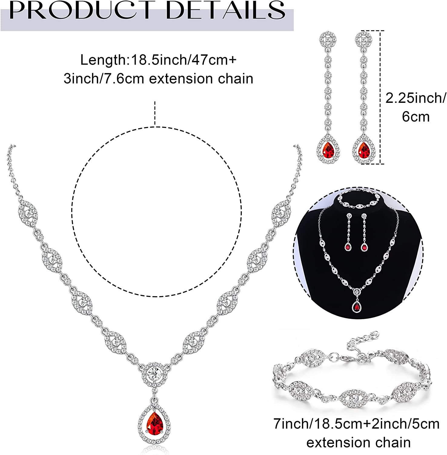 • 【Bridal Jewelry Set】Bridal jewelry set for wedding comes with 1 rhinestone necklace, 1 prom bracelet and 1 pair of teardrop dangle bridal earrings, bridal necklace lay flat, can show your charisma well, perfect gift for your soon-to-be bride or bridesmaid friend.